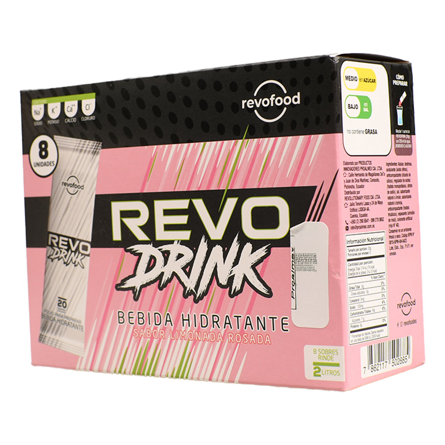 - Rinde 2 litros. Continene sodio, potasio, calcio y cloruro electrolitos esenciales para la hidratación