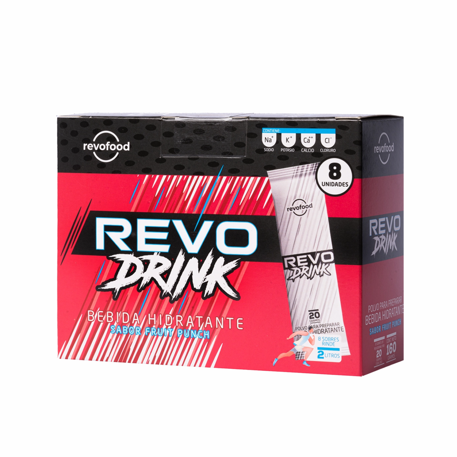 Bebida Hidratante En Polvo Sabor A Fruit Punch Display REVO DRINK 160 G