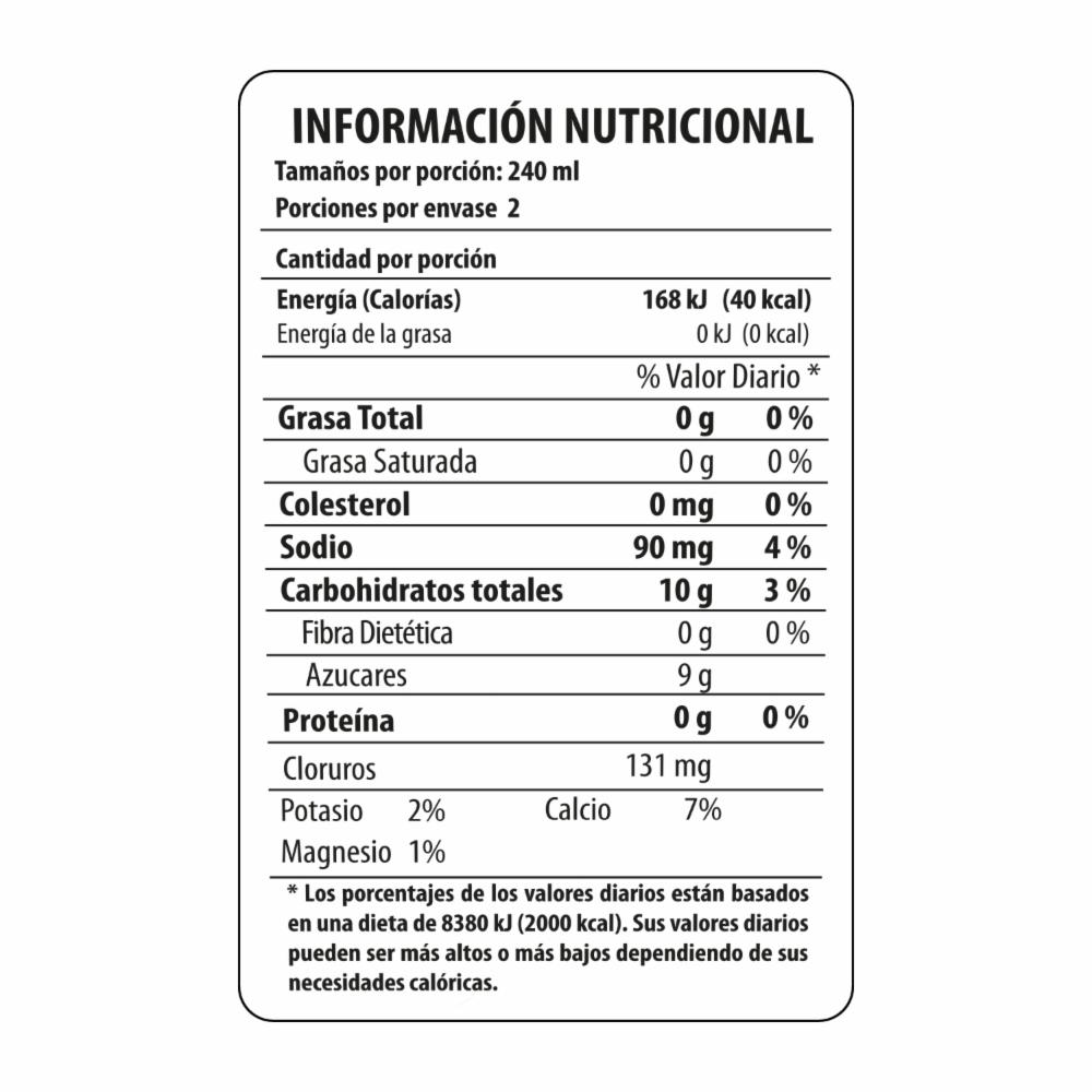 - Bebida hidratante con sabor a Tropical Fruits.