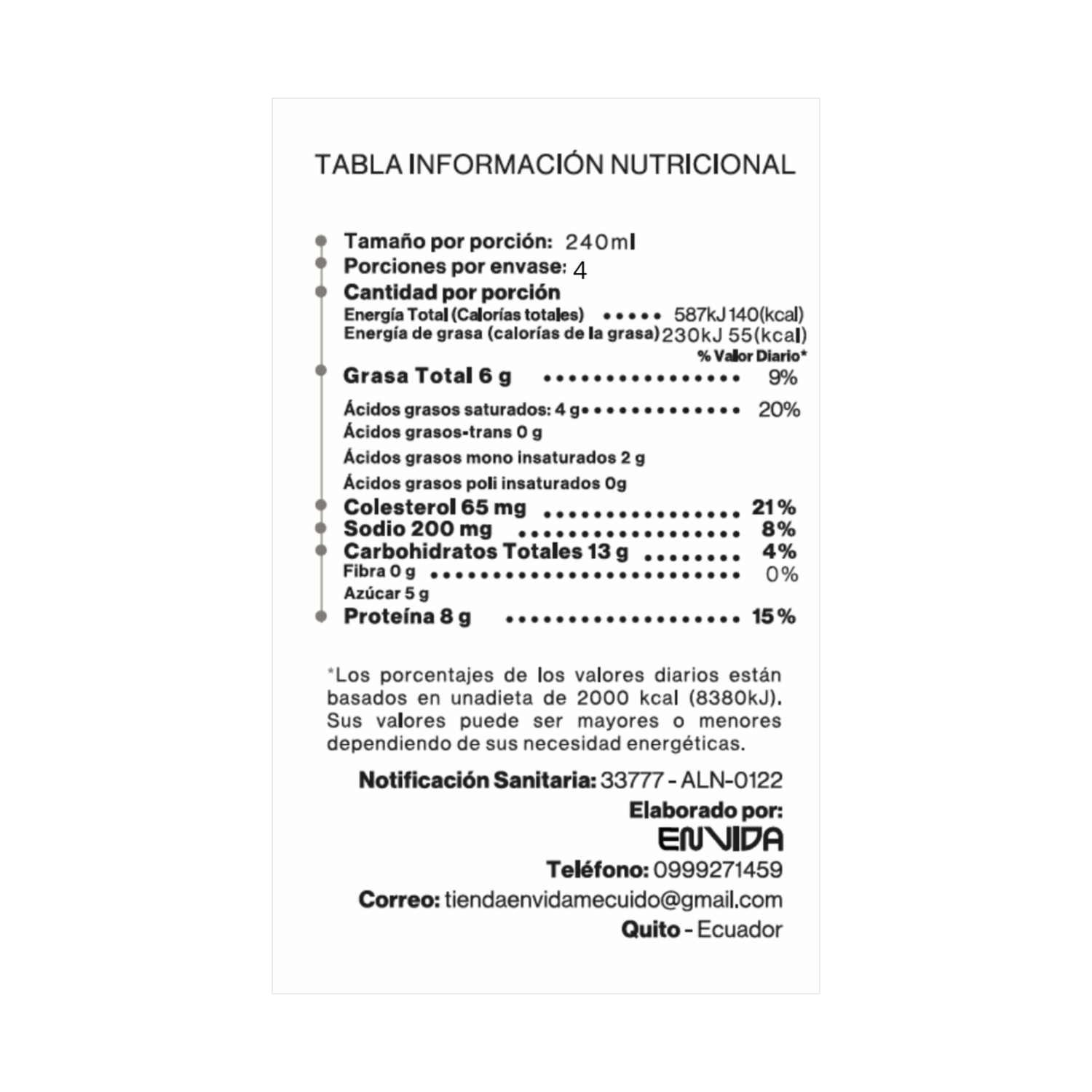 • El kefir natural envida es un probiótico que contiene una gran cantidad de bacterias beneficiosas para la salud intestinal. Ayuda a mejorar la digestión y fortalecer el sistema inmunológico. Es una fuente de calcio, proteínas y vitaminas del complejo B. Además contribuye a mantener un equilibrio en la flora intestinal y a prevenir el estreñimiento