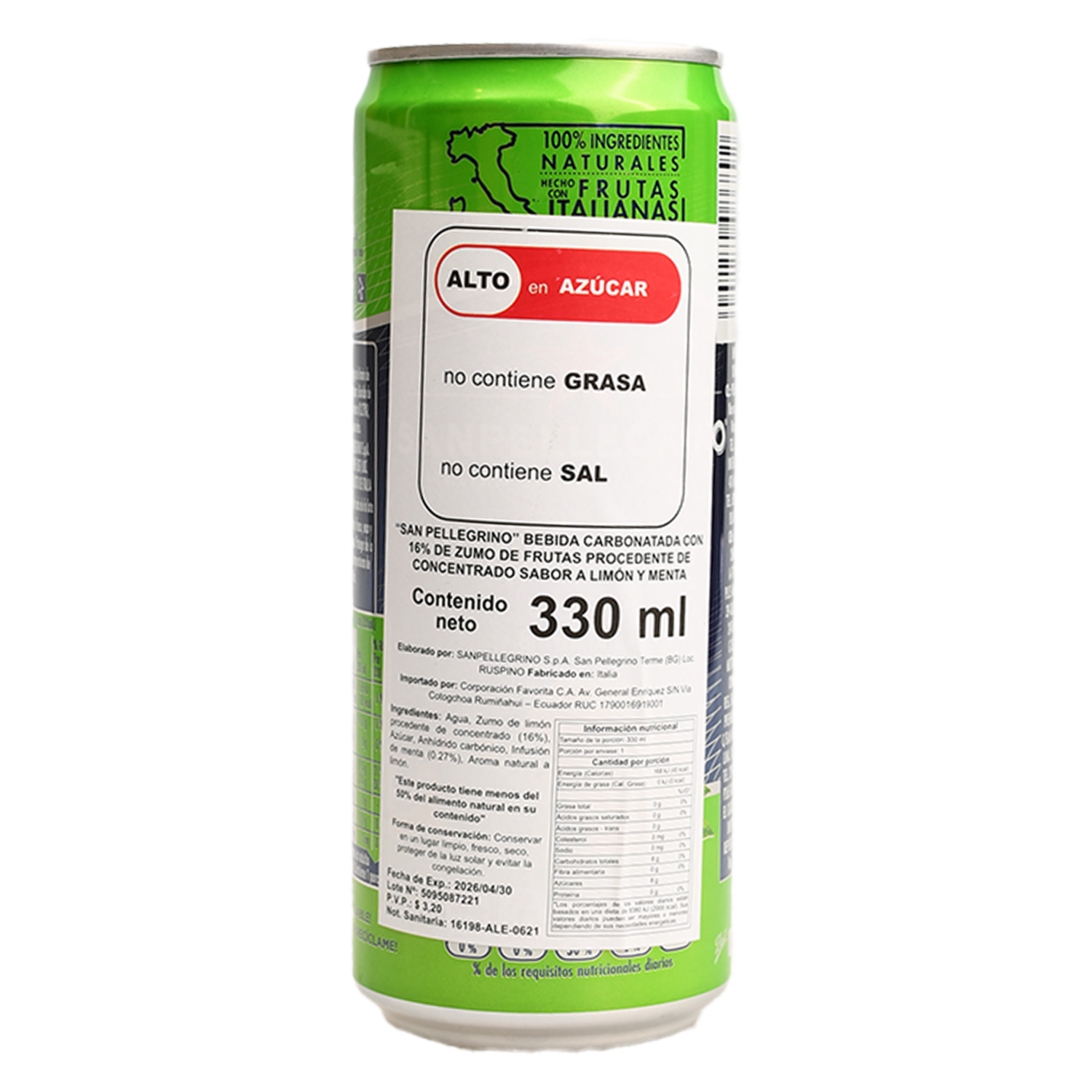 Bebida Saborizada Con Zumo De Limón Y Menta S.PELLEGRINO 330 Ml – S.PELLEGRINO. Disponible en nuestros locales. Precio y stock pueden variar según la tienda.