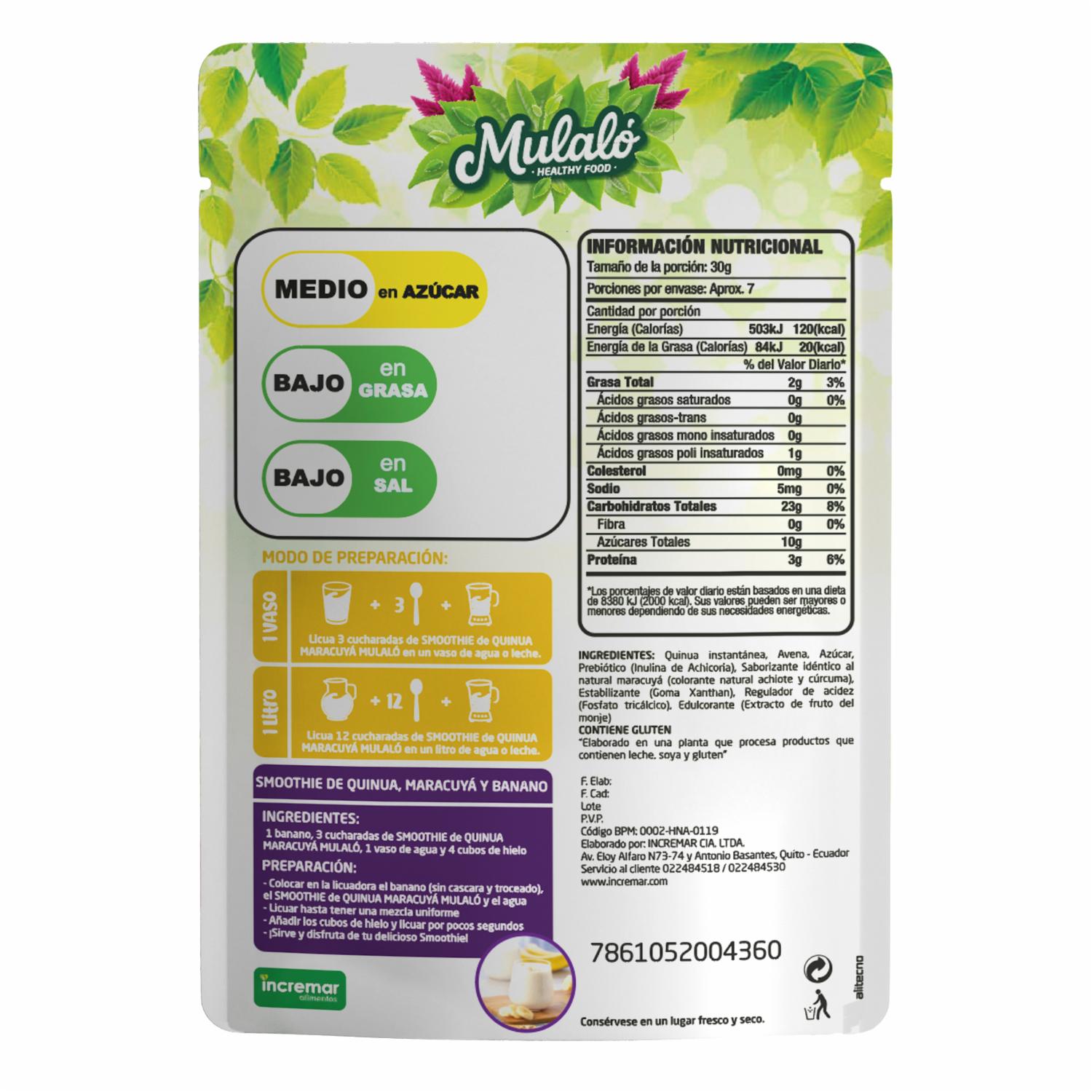 Bebida Smoothie Quinua Con Avena Sabor Maracuyá MULALÓ 200 G