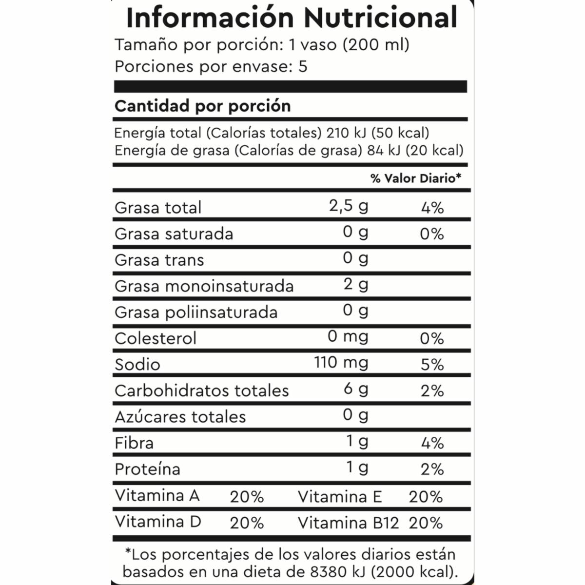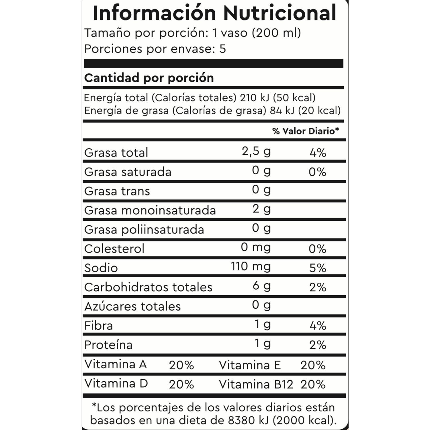 Contiene fibra, calcio y vitaminas A,D,E y B12