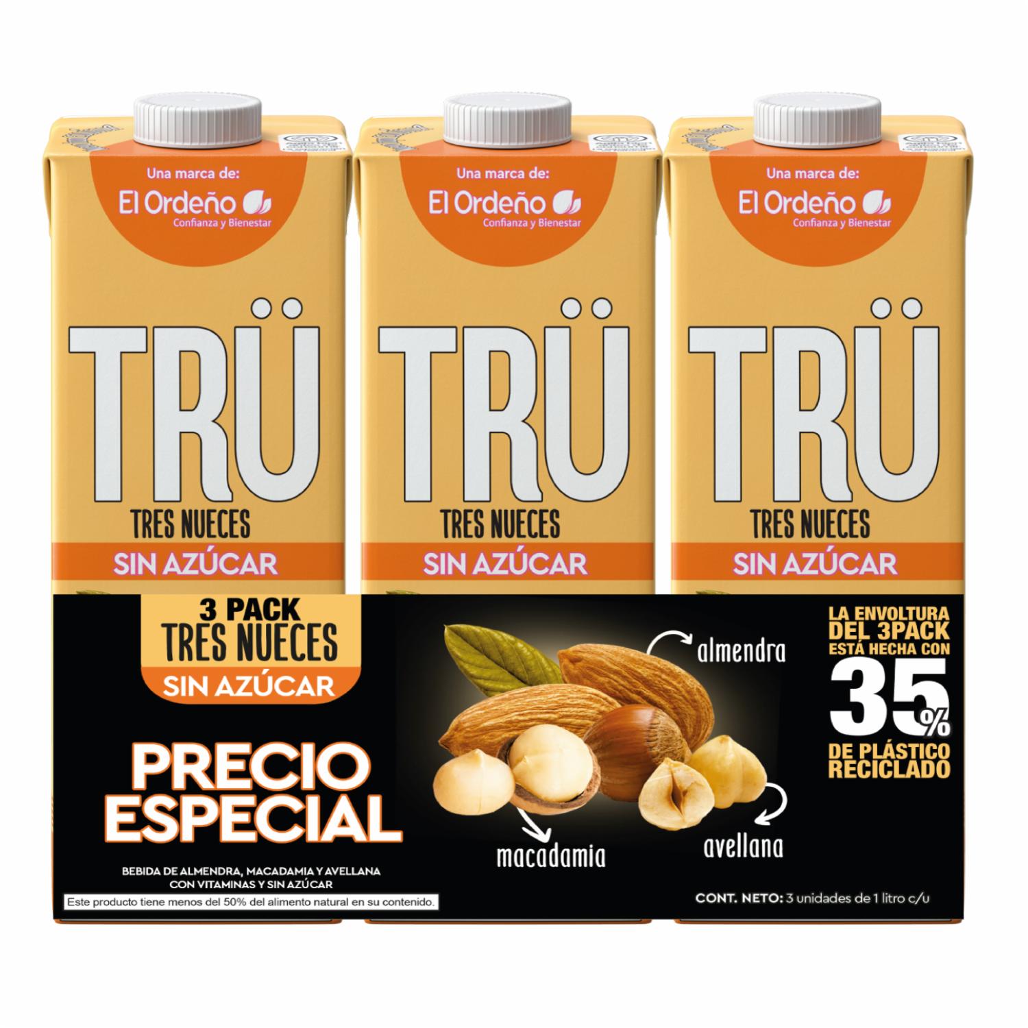 Bebida Tres Nueces Almendras, Avellanas Y Macadamias Sin Azúcar TRÜ 3 X 1000 Ml