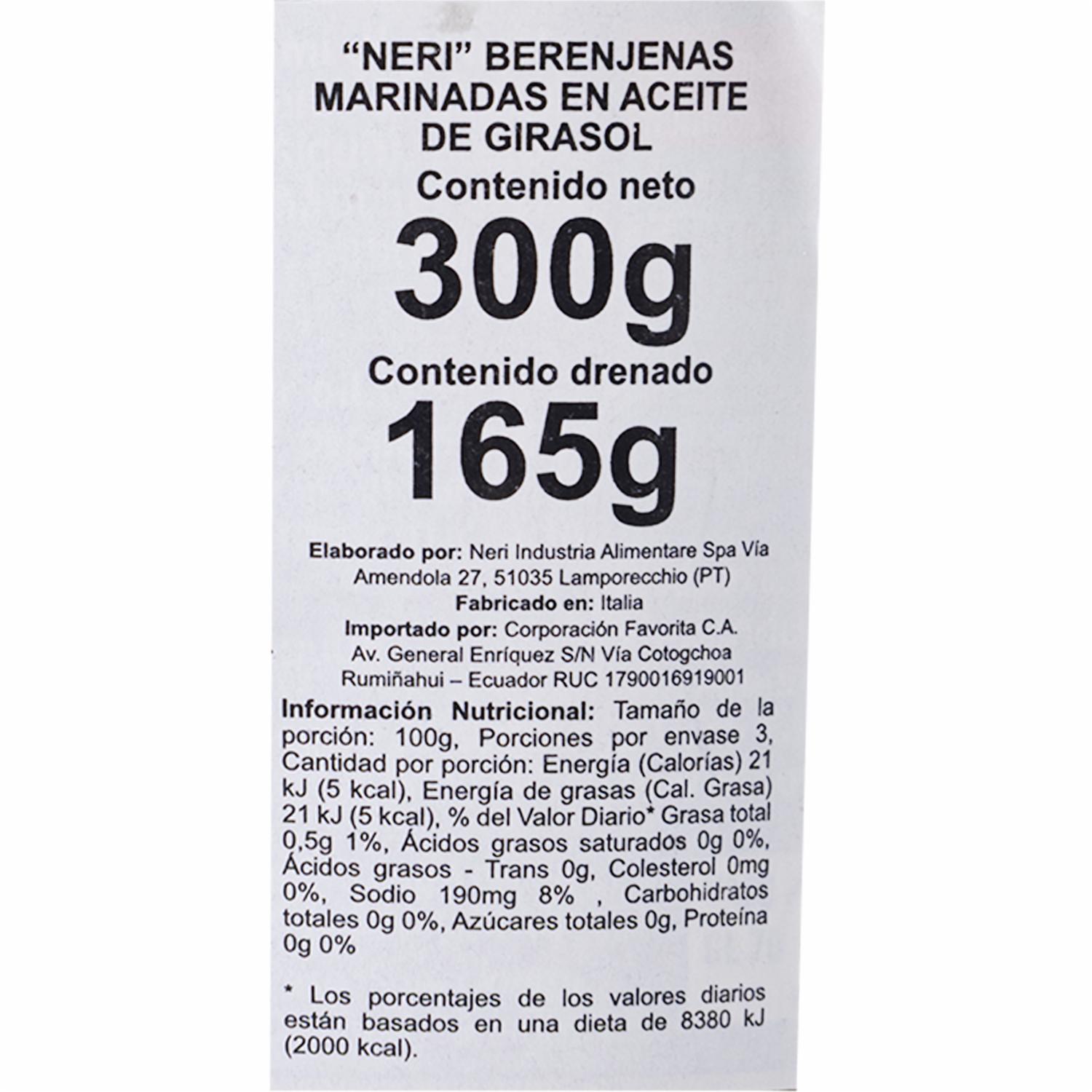 - - Las berenjenas marinadas NERI son una opción saludable, ya que son bajas en calorías y grasas