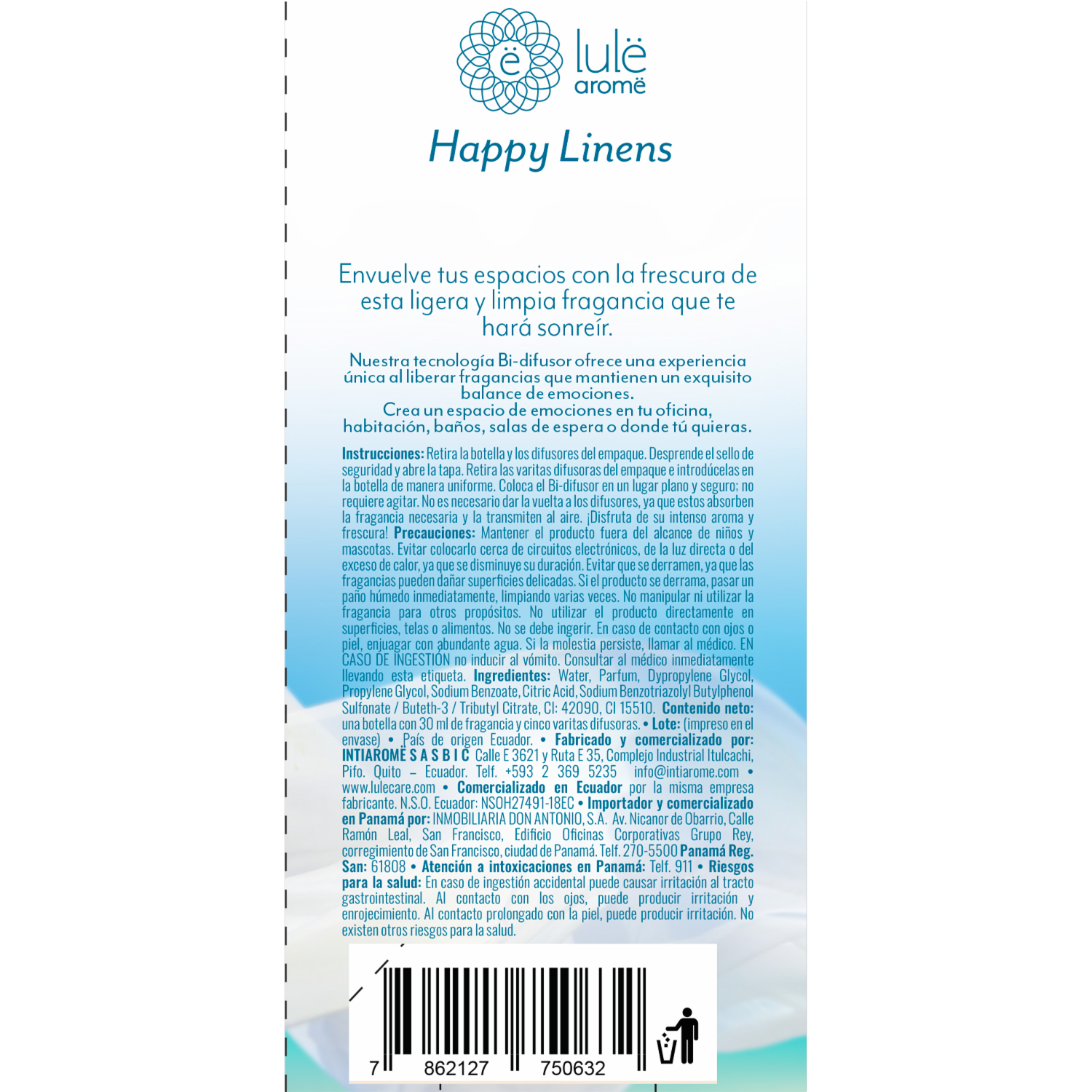 Bi-difusor Ambiental Fragancia Happy Linens LULË AROMË 30 Ml