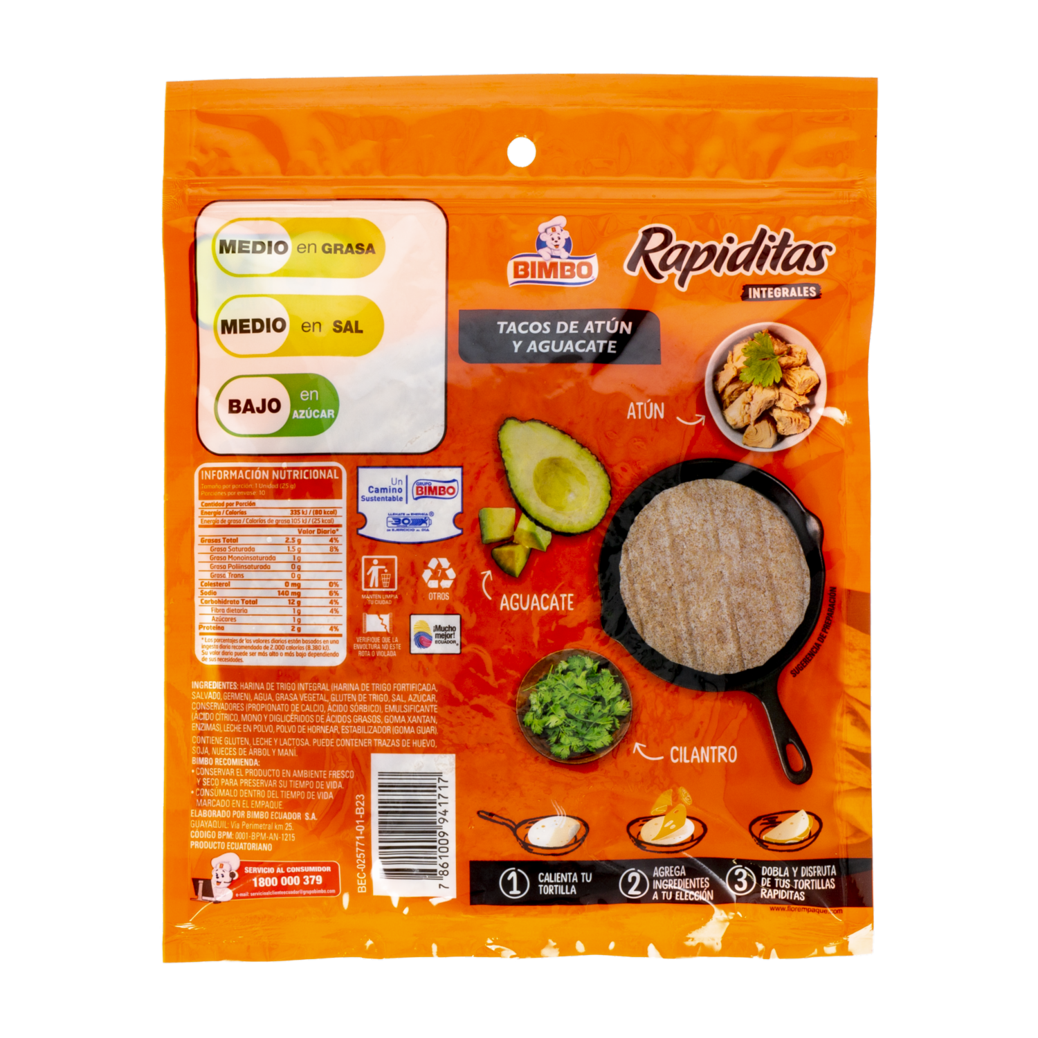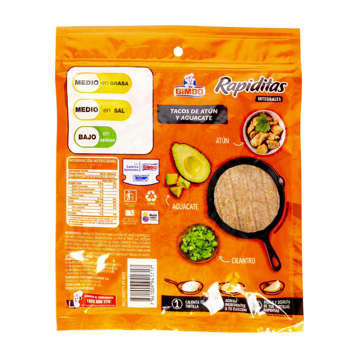 Tortillas Integrales BIMBO 250 G – BIMBO. Disponible en nuestros locales. Precio y stock pueden variar según la tienda.