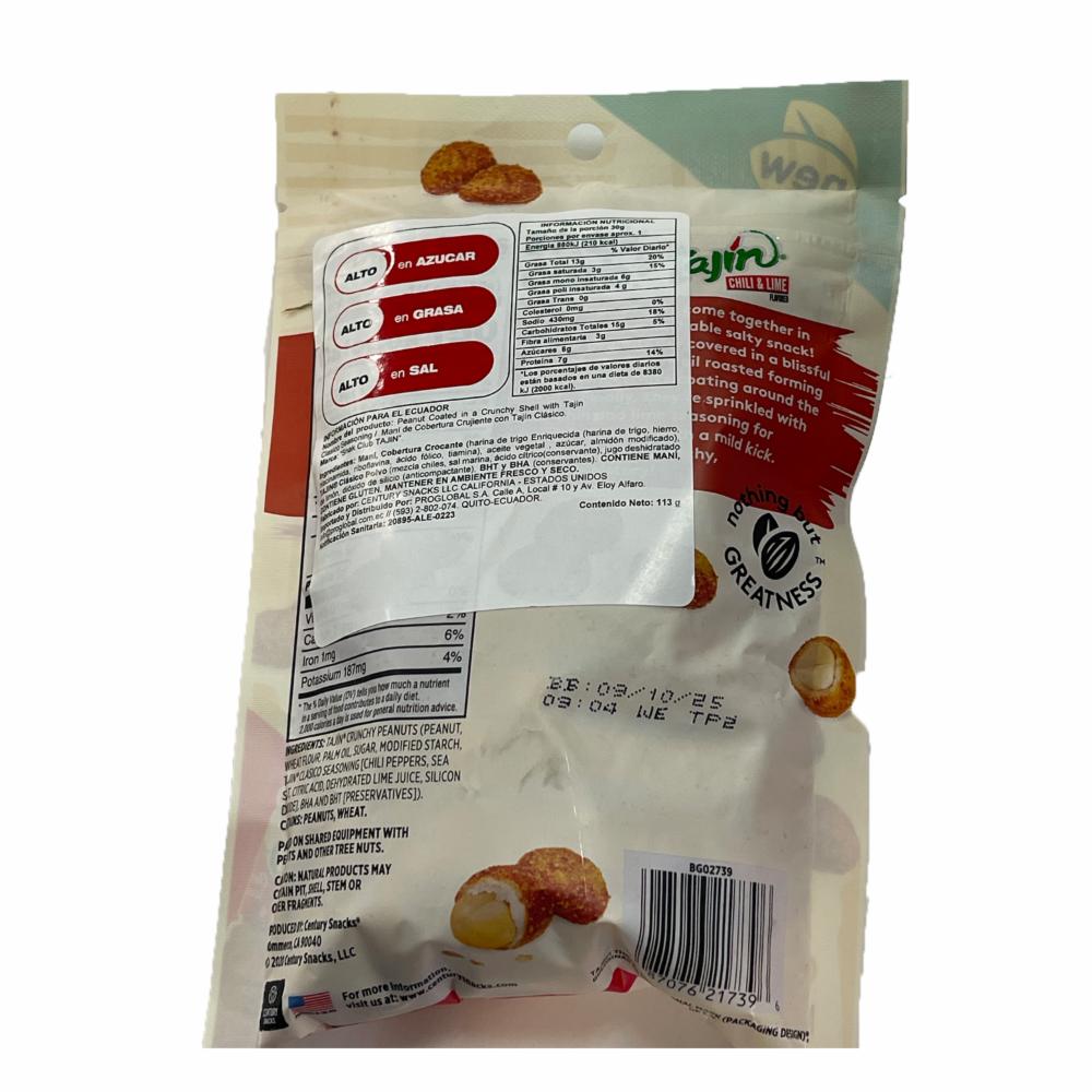 - Los "Bocaditos Crunchy Peanuts Tajín" en una presentación de 113 gramos son un tipo de aperitivo que consiste en cacahuetes (maníes) crujientes sazonados con el característico sabor de Tajín. Tajín es conocido por su mezcla de condimentos picantes y salados, y esta variante de bocaditos ofrece cacahuetes tostados con ese sabor único
