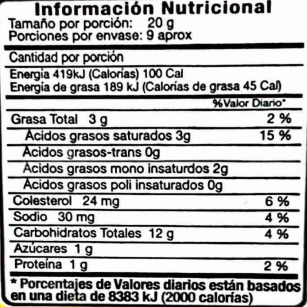 • Contiene gluten, lactosa, azúcar, mantequilla