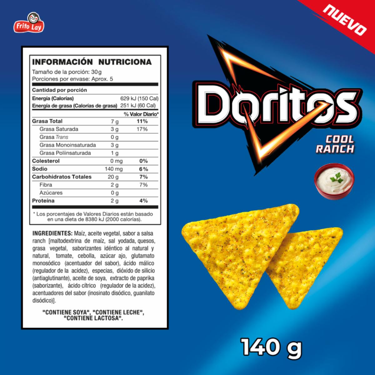 - DORITOS Cool Ranch Flavored Tortilla Chips son amados por su sabor picante y sabor fresco.