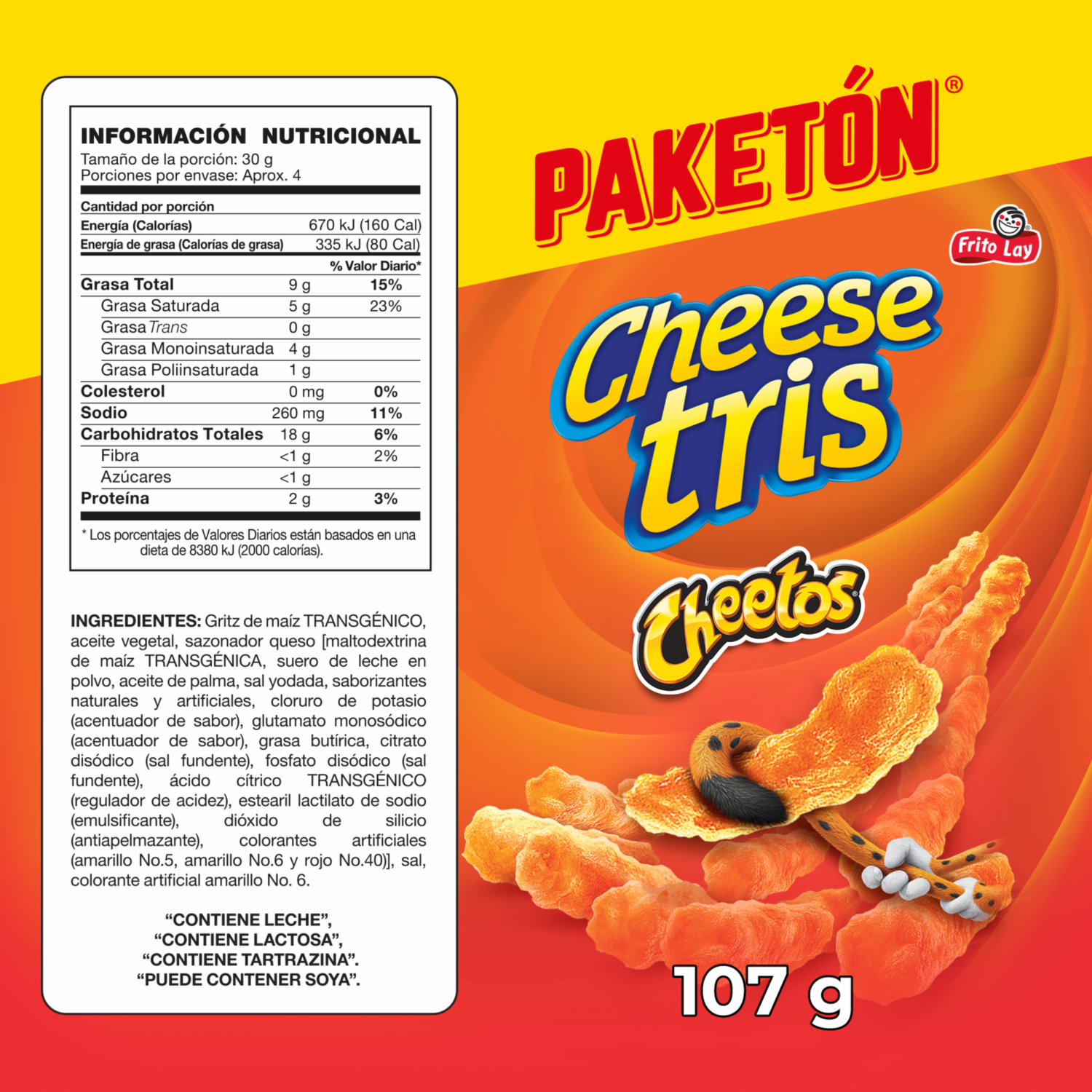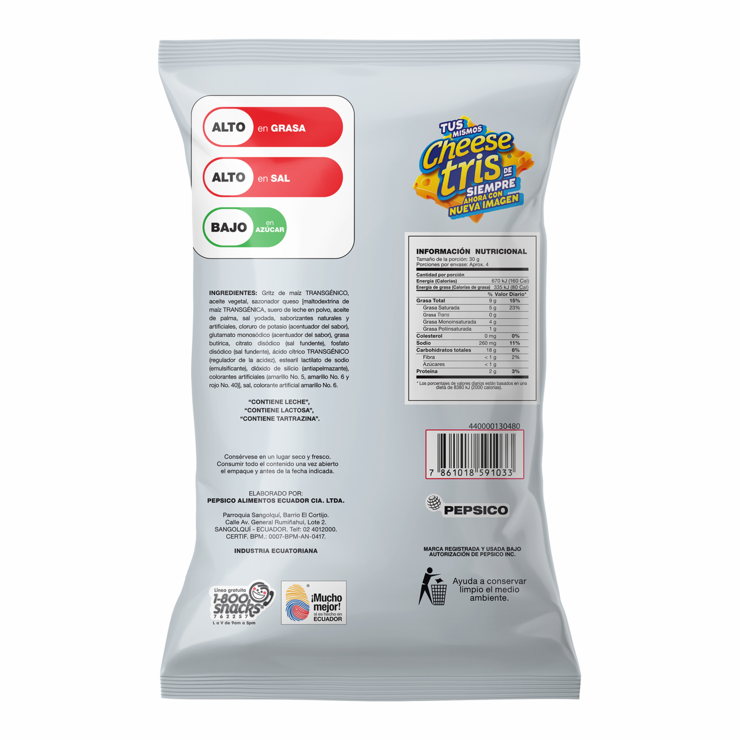 - Déjate conquistar por el delicioso sabor de los Bocaditos de Maíz Sabor a Queso CHEESE TRIS en su presentación de 107 g. Estos irresistibles bocaditos combinan la crujiente textura del maíz con el rico y auténtico sabor a queso, creando un snack perfecto para disfrutar en cualquier ocasión