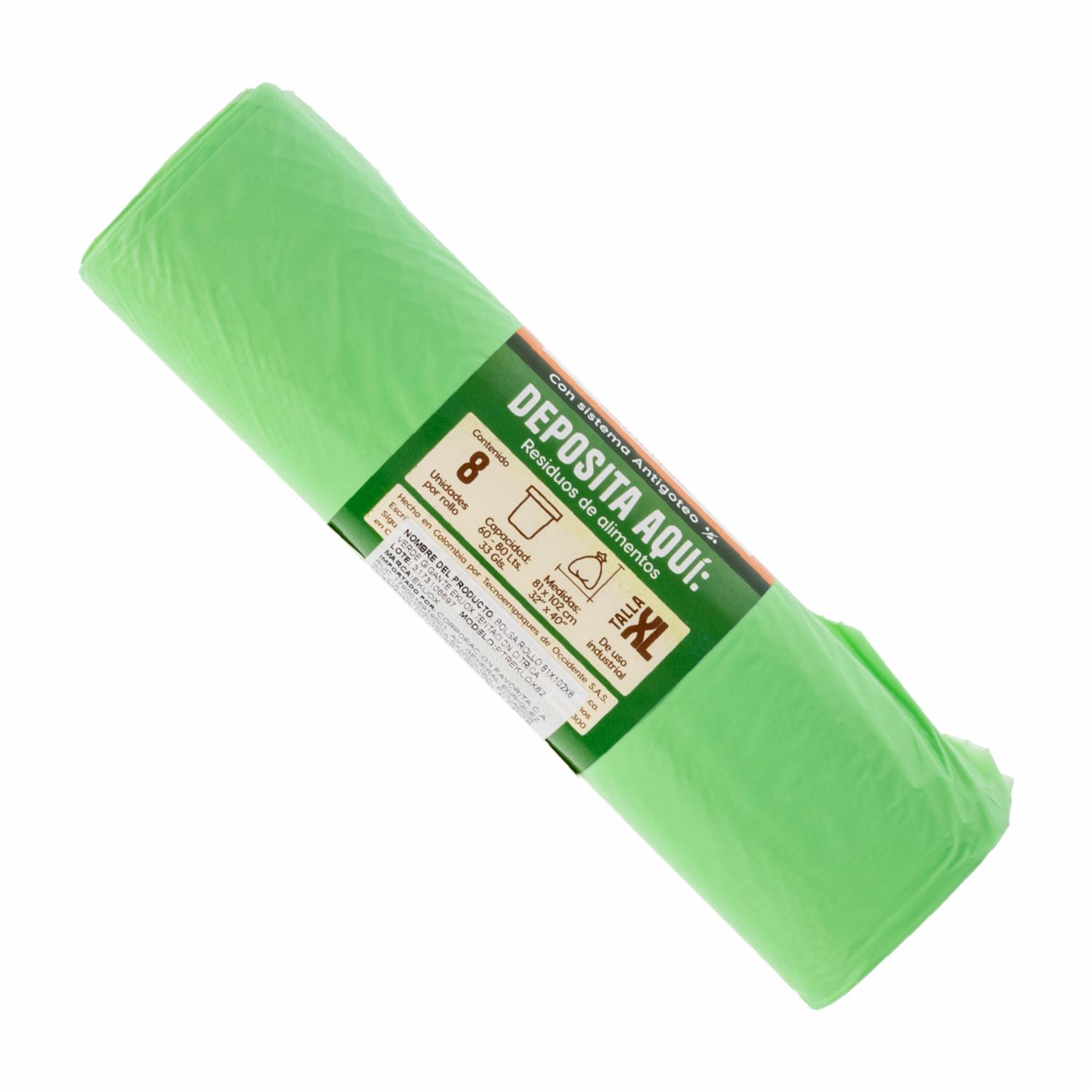 Bolsa De Basura Gigante Mega Resistente Aroma Cítrico Verde X 8 Uds EKUOX 81 X 102 Cm