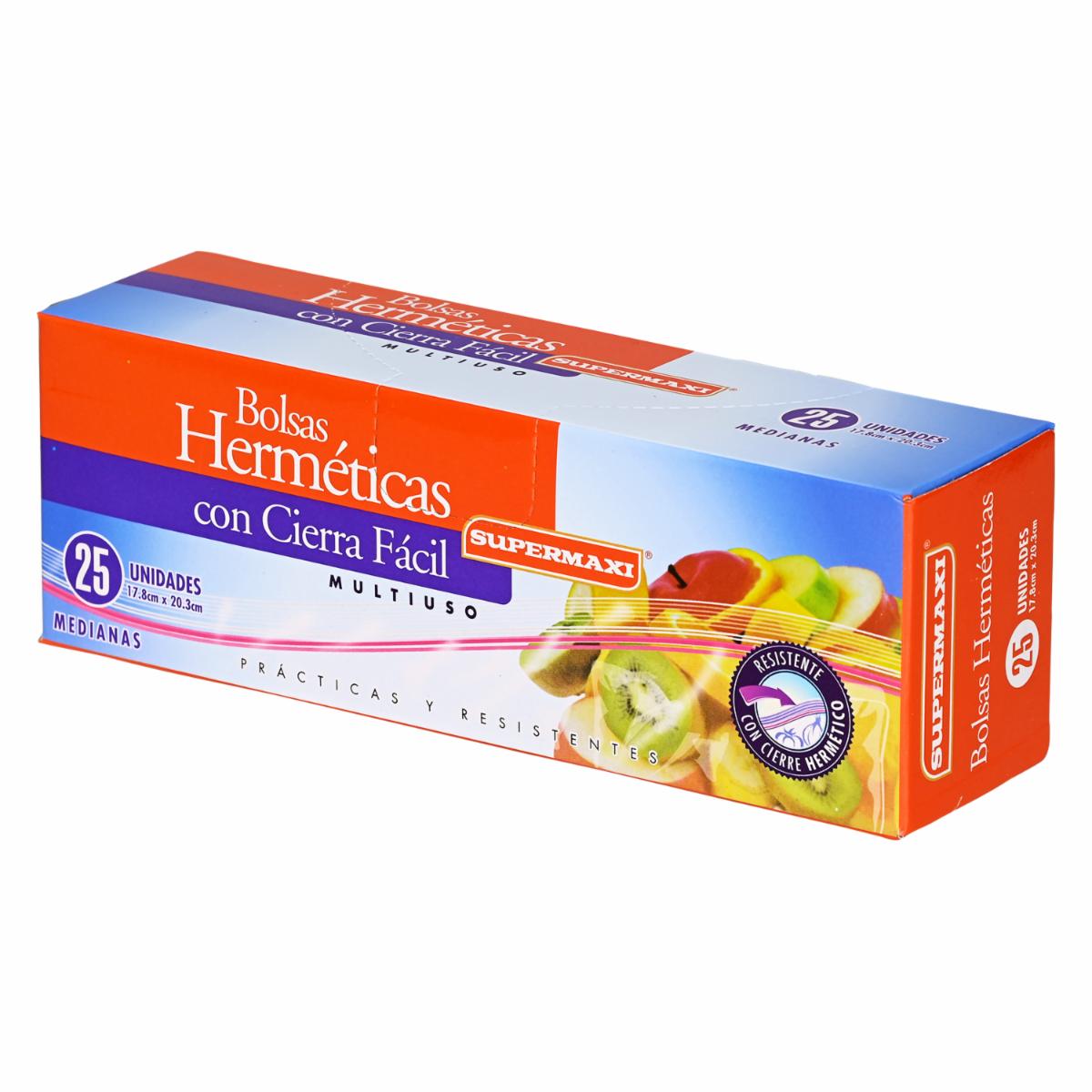 Bolsa Hermética Mediana SUPERMAXI 25 Unidades – SUPERMAXI. Disponible en nuestros locales. Precio y stock pueden variar según la tienda.