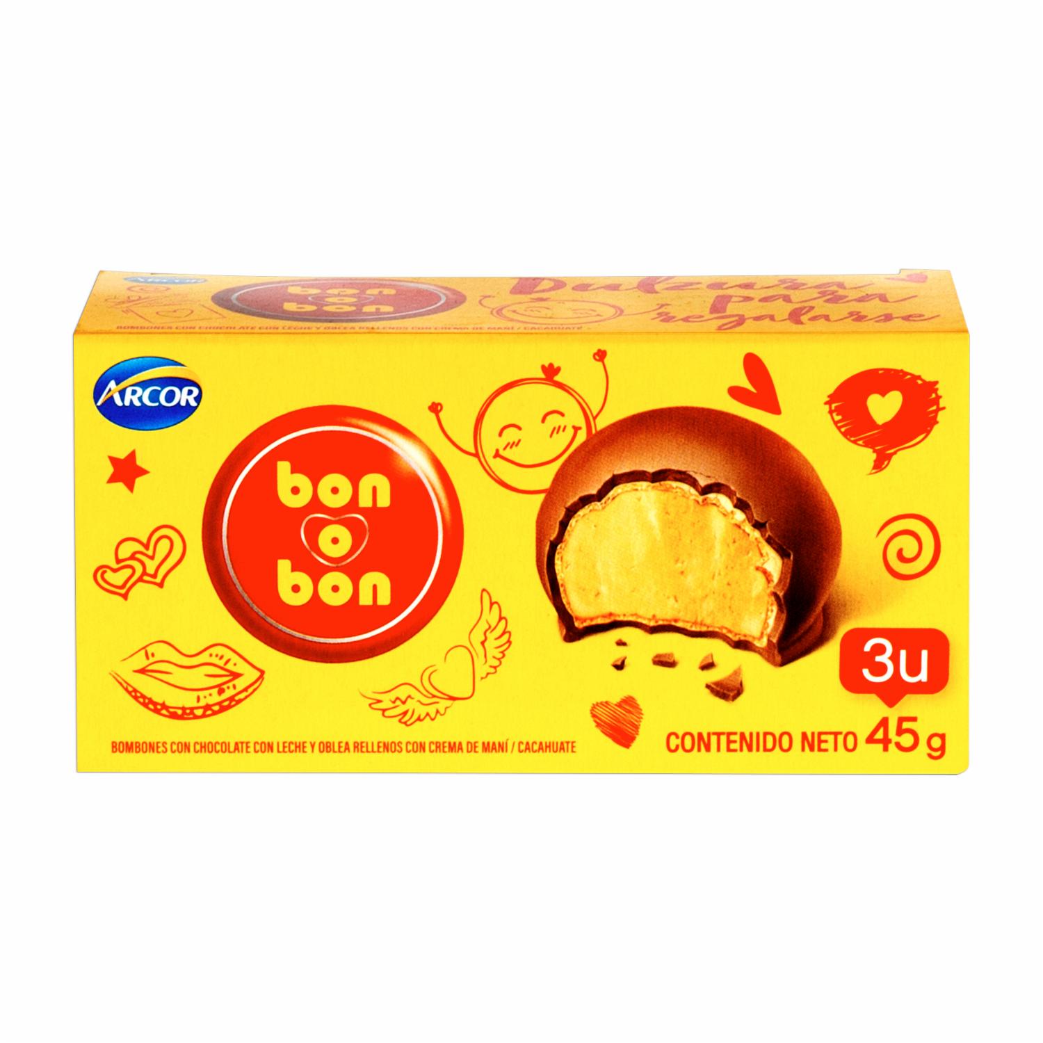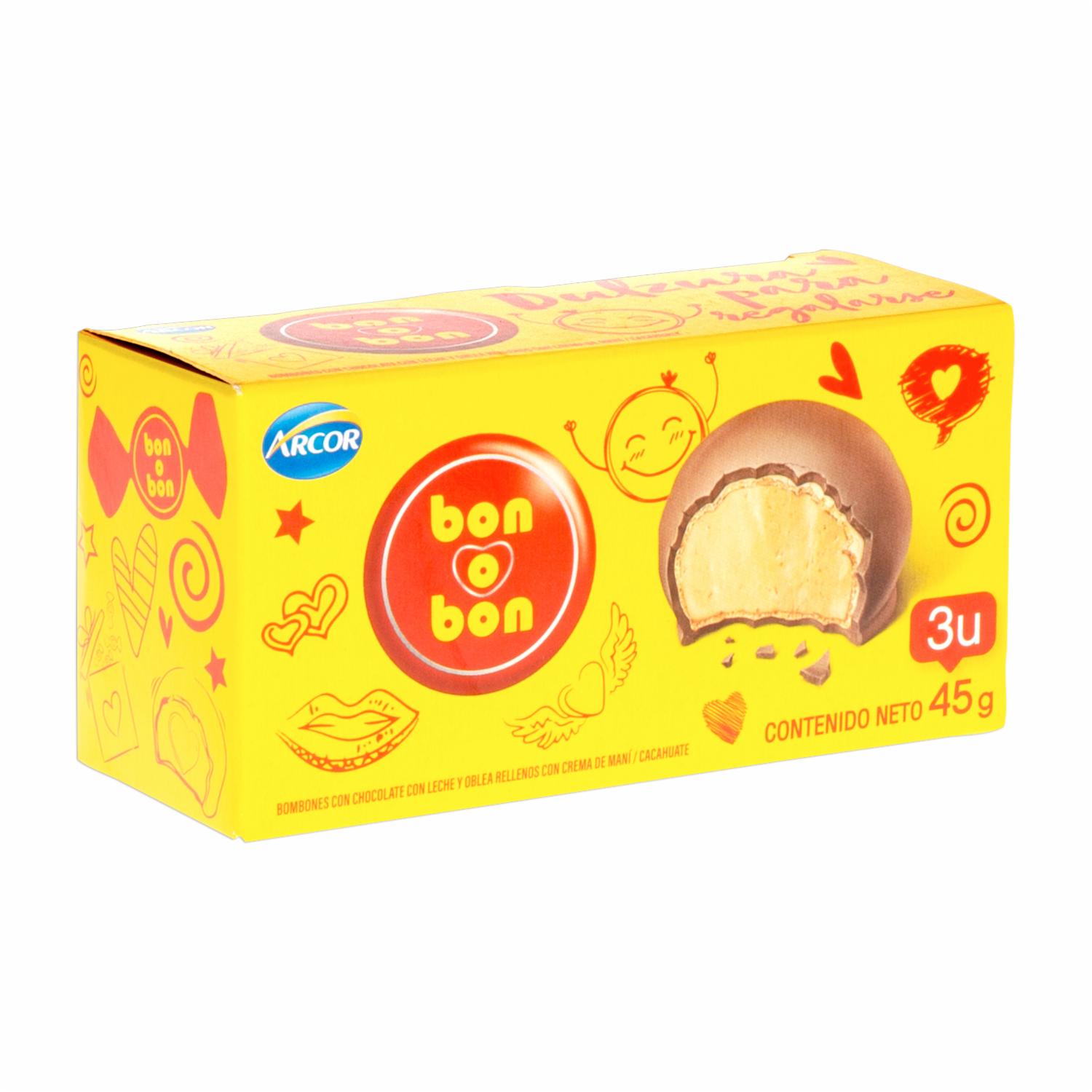 Bombón De Chocolate Relleno BON O BON 45 G – BON O BON. Disponible en nuestros locales. Precio y stock pueden variar según la tienda.