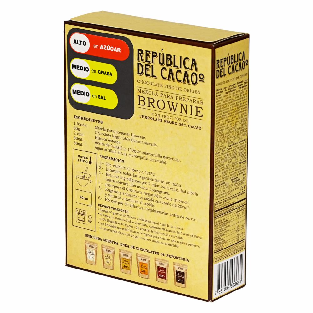 Brownie Premezcla REPUBLICA DEL CACAO 400 g – REPUBLICA DEL CACAO. Disponible en nuestros locales. Precio y stock pueden variar según la tienda.