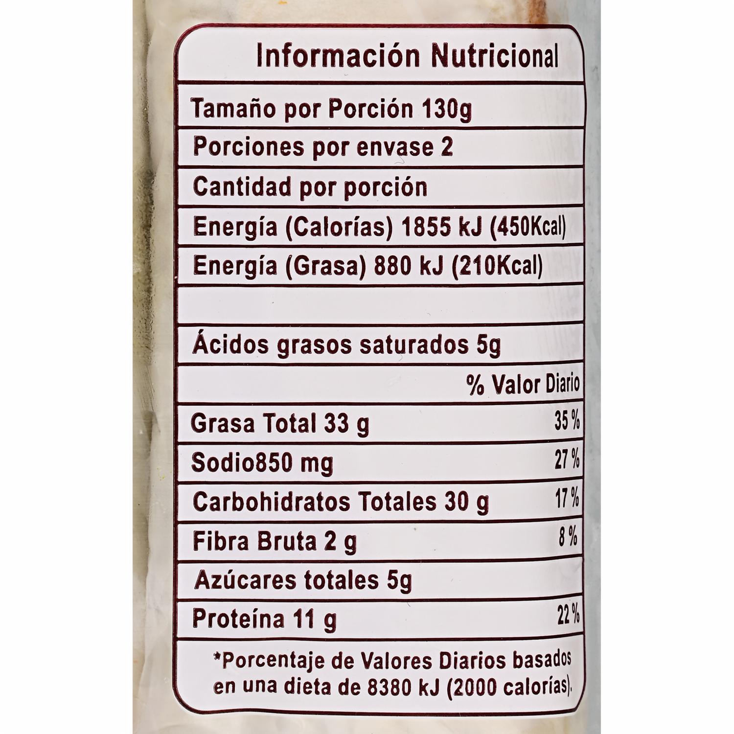 Burritos completamente cocinados, facilita ser calentados en horno. Tortillas de harina de trigo rellenas de carne y frejol