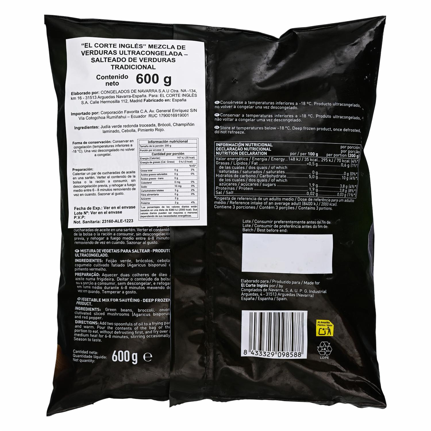 Salteado De Verduras Tradicional EL CORTE INGLES 600 G