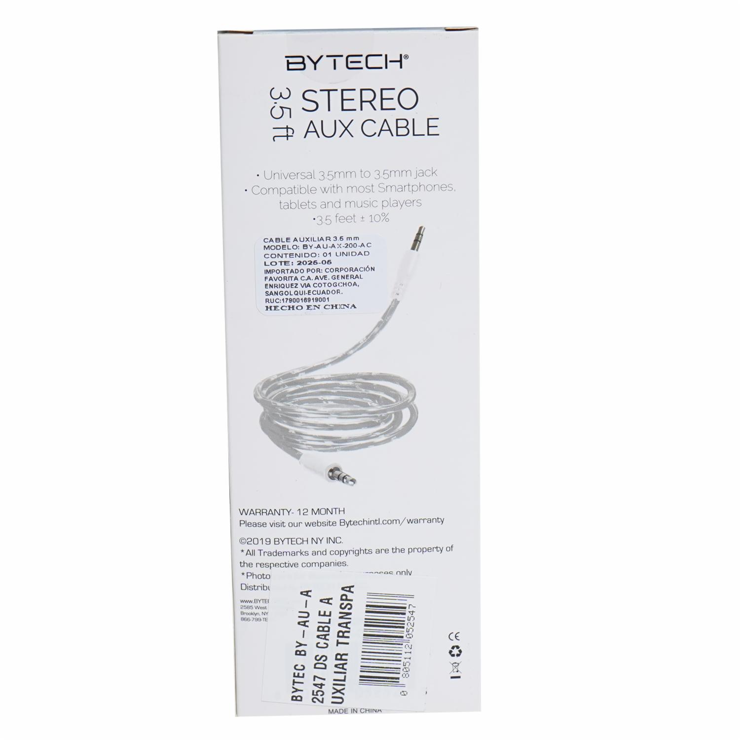 Cable Auxiliar Transparente Para Audio BYTECH 3,5 Pies