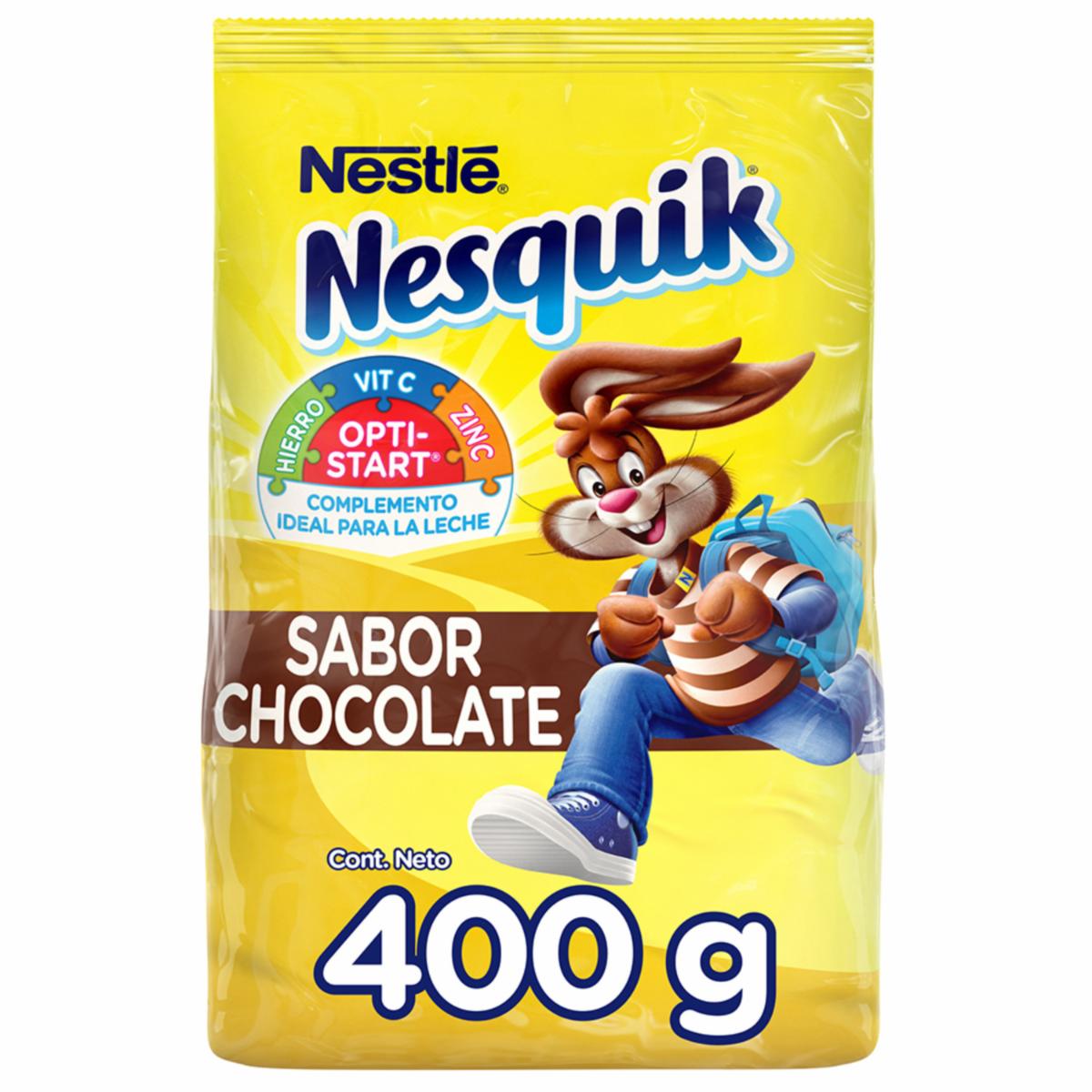 - Saborizante para leche Nesquik Chocolate, es el complemento ideal de la leche en el desayuno de tus hijos ya que aporta aporta hierro, Vitamina B y zinc, además de asegurar un exquisito sabor