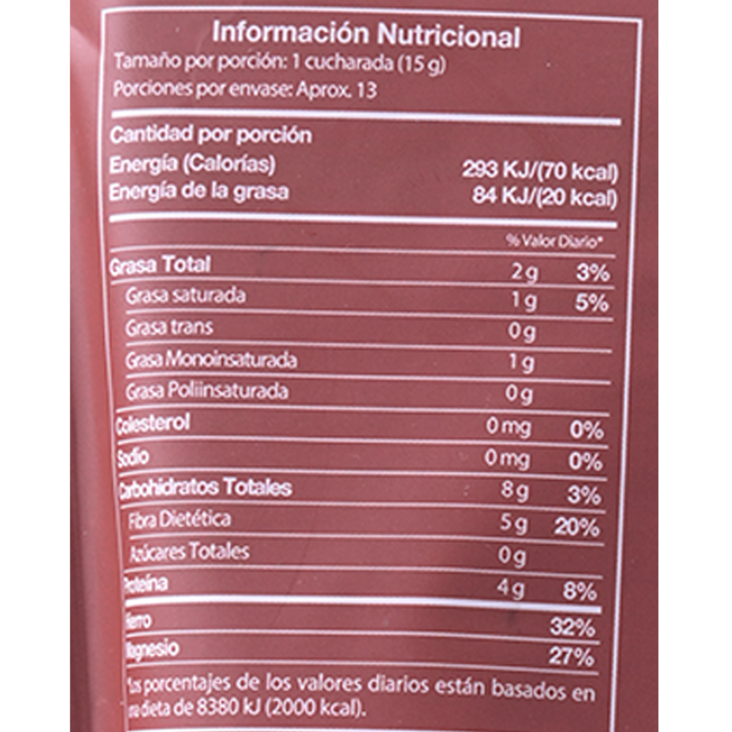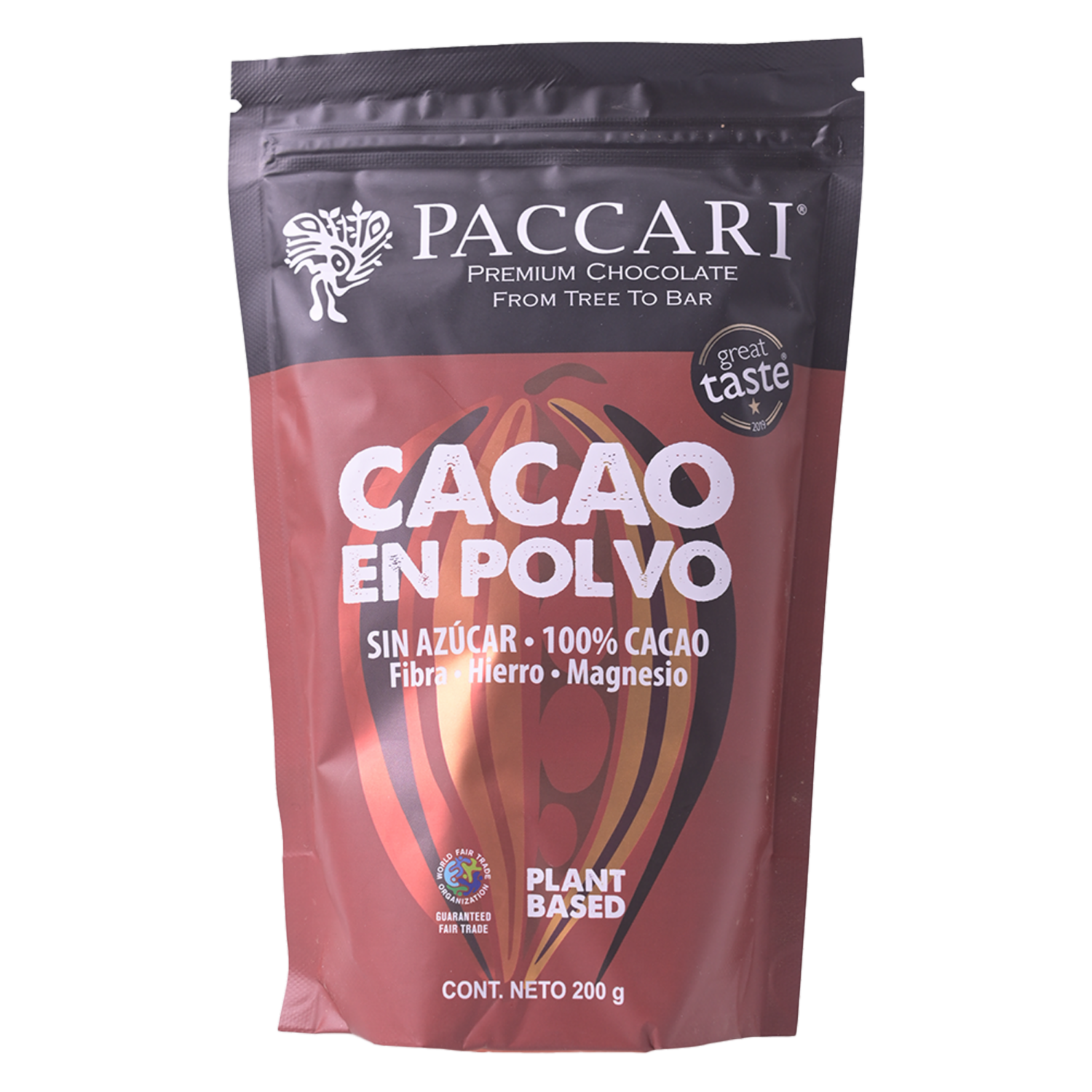 Cacao En Polvo Natural Sin Azúcar Cocoa PACCARI 200 G