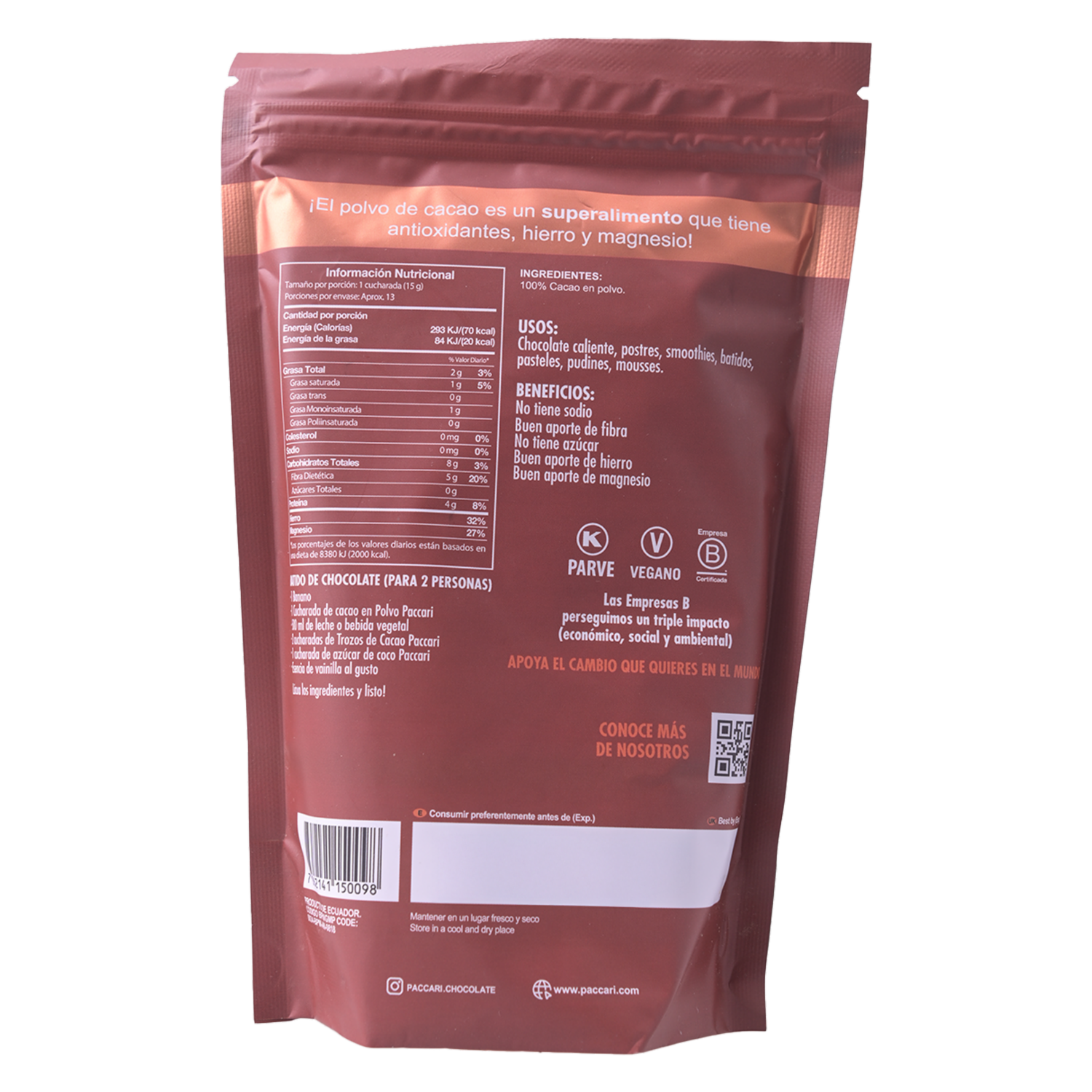 consultando preciosCacao En Polvo Natural Sin Azúcar Cocoa PACCARI 200 G – PACCARI. Disponible en nuestros locales. Precio y stock pueden variar según la tienda.