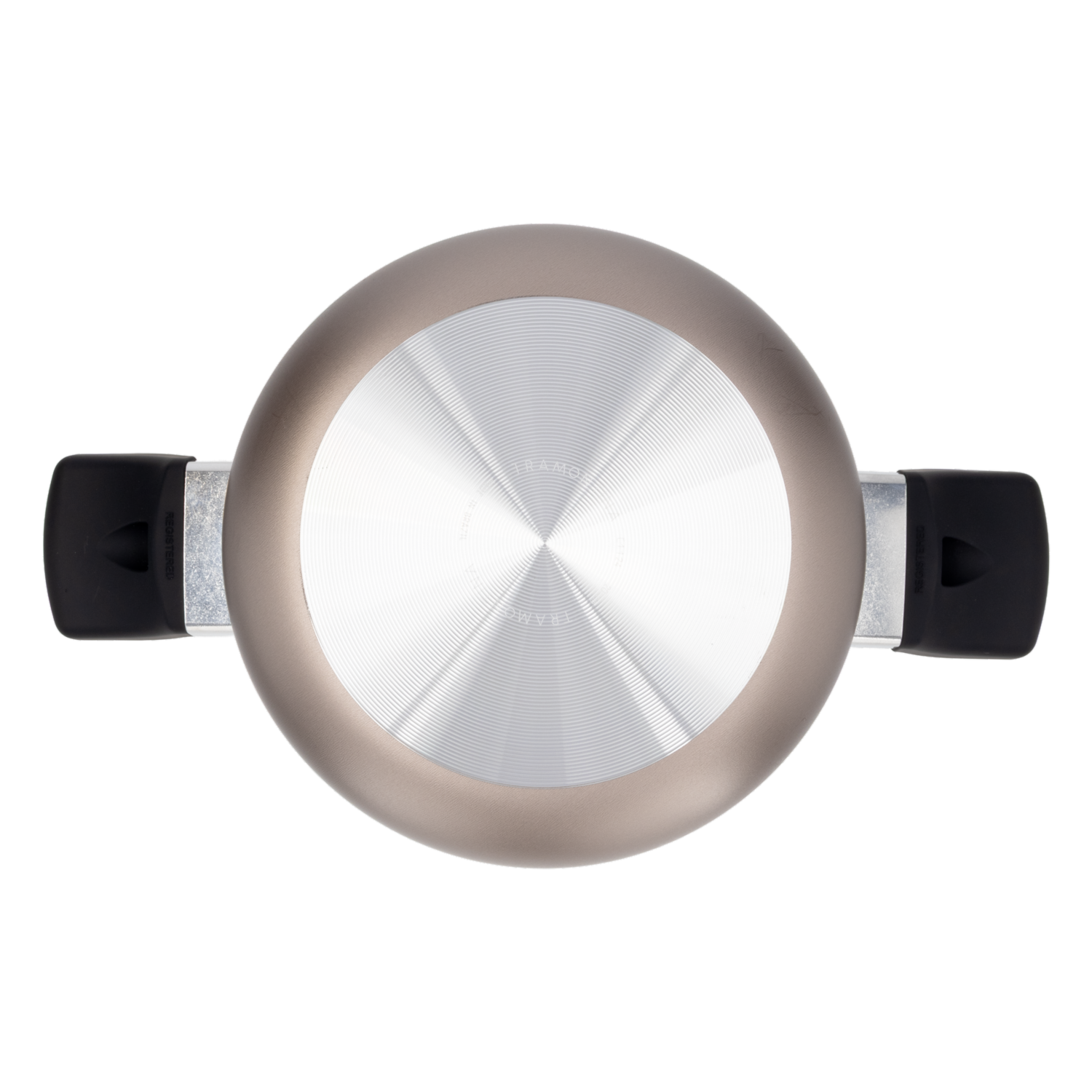 - Capacidad de 2.9 litros Diámetro de 20 cm Altura de 15.4 cm Aluminio resistente Revestimiento antiadherente interno y externo, libre de PFOA Tapa de vidrio templado para controlar la cocción sin levantar la tapa