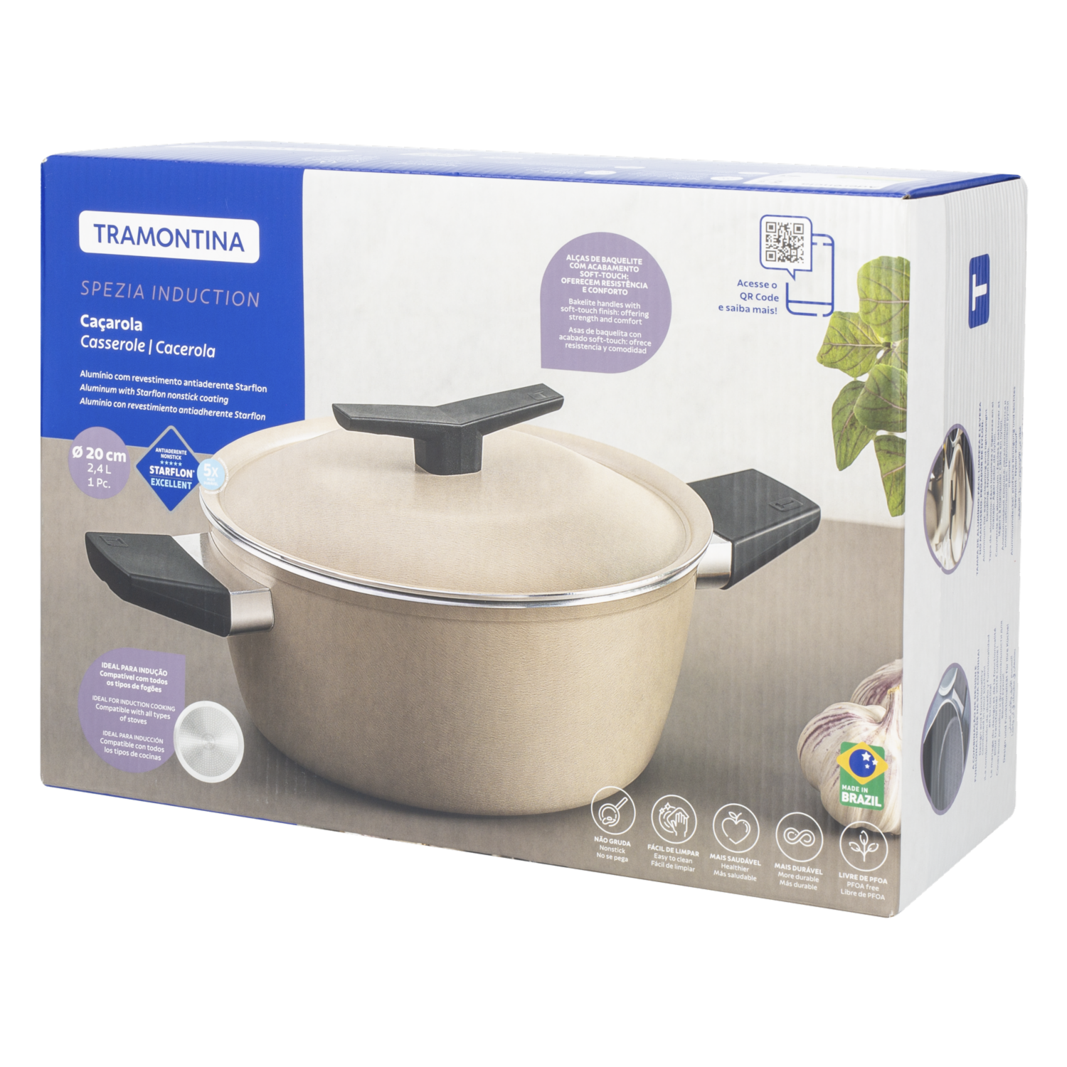- Características - Material de aluminio con revestimiento antiadherente Starflon Excellent - Tapa de aluminio incluida - Mango y asas diseñados para un manejo seguro - Capacidad de 2,4 litros - Compatible con cocinas de gas, eléctrica, vitrocerámica e inducción - No apta para microondas ni horno - Recomendado lavado manual