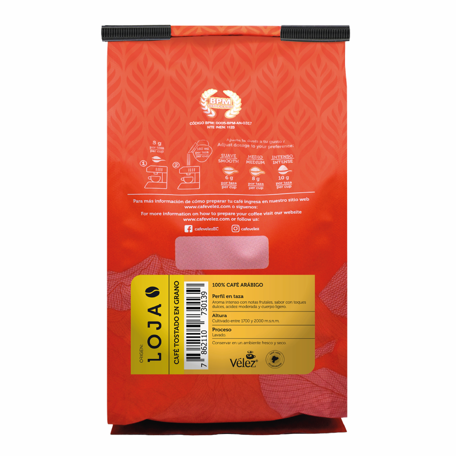 Café Tostado En Grano Fino Ecuatoriano Lojano VÉLEZ 340 G