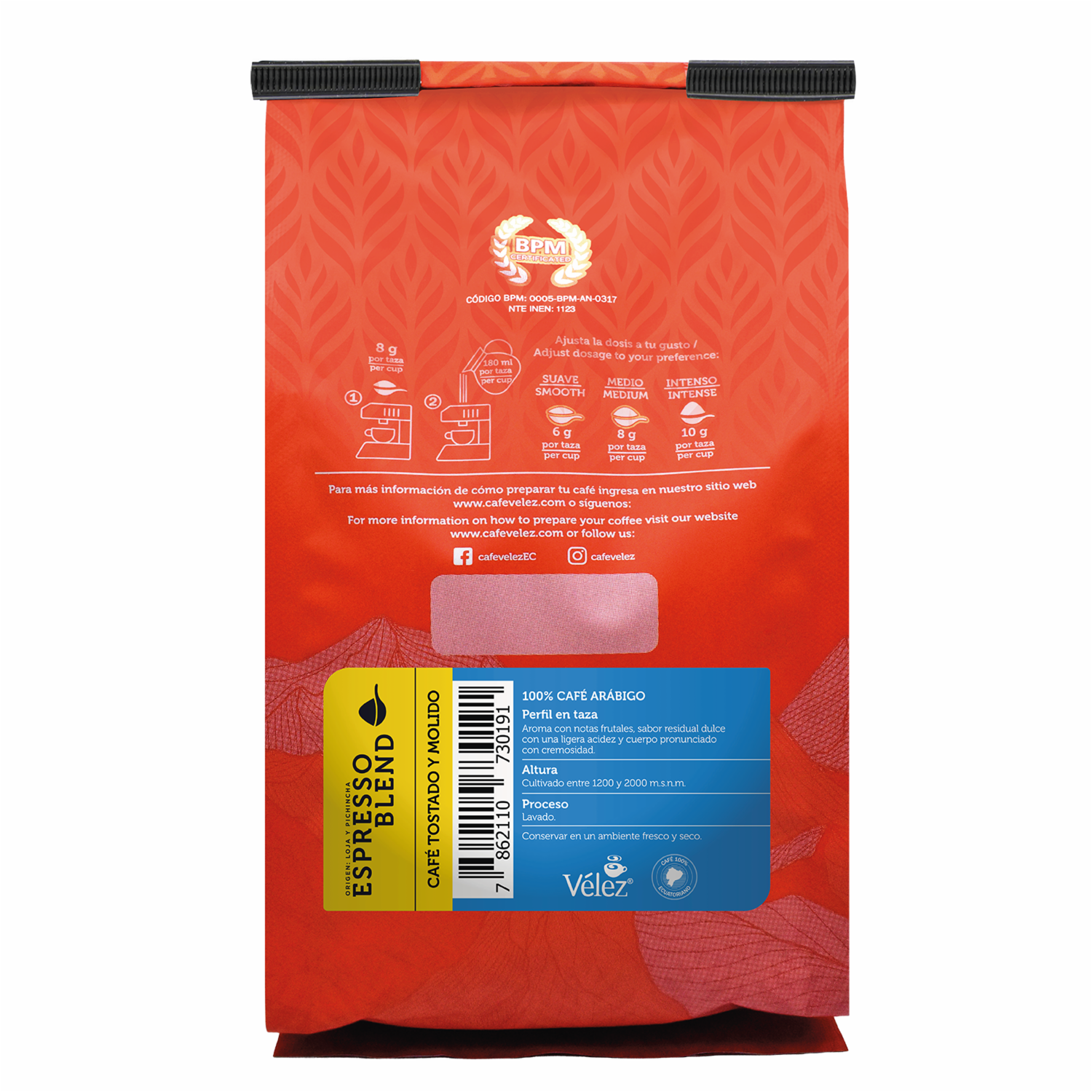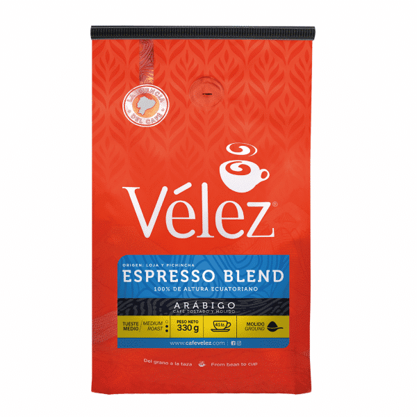Café Tostado Molido Fino Ecuatoriano Espresso Blend VÉLEZ 330 G