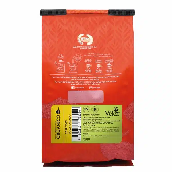 Café Tostado Molido Fino Ecuatoriano Orgánico VÉLEZ 340 G