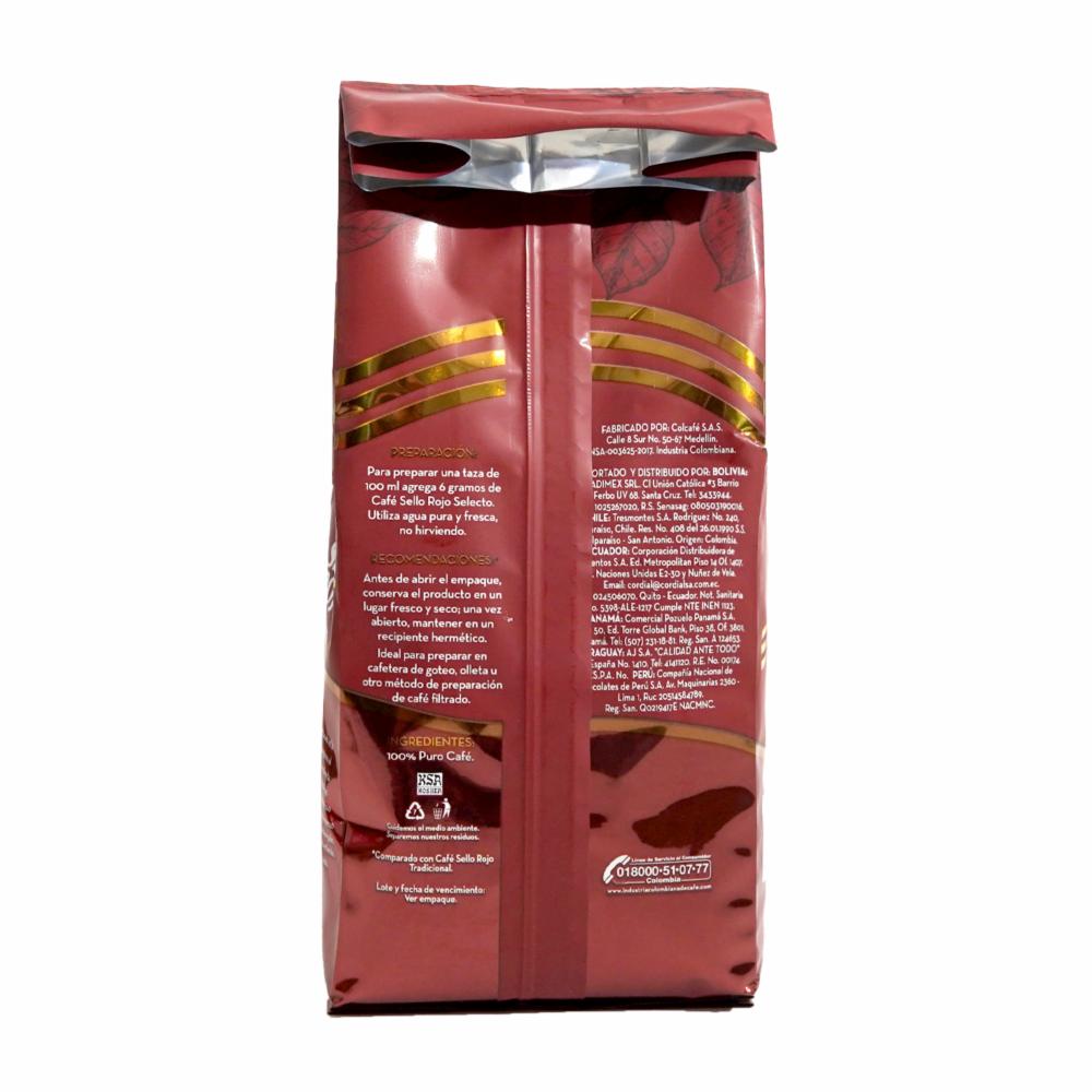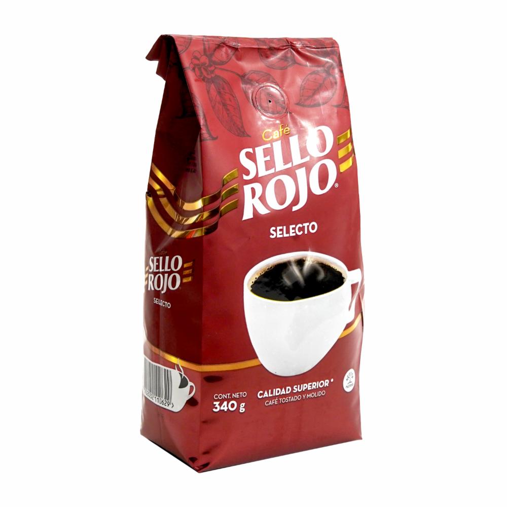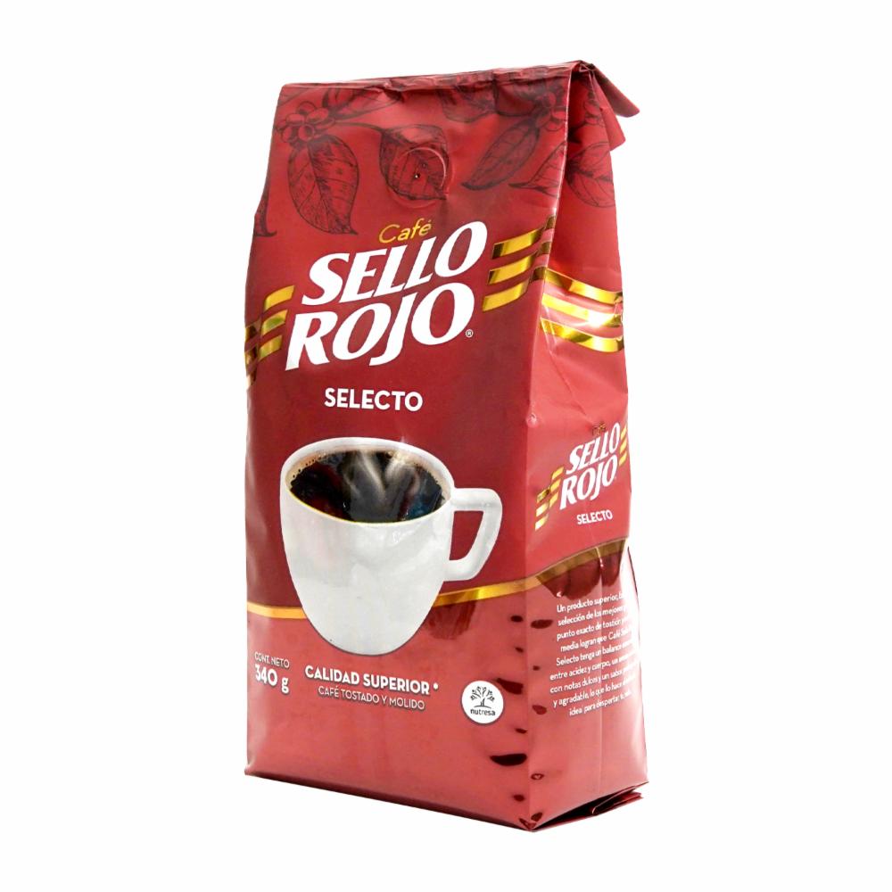 Café Molido Selecto SELLO ROJO 340 G – SELLO ROJO. Disponible en nuestros locales. Precio y stock pueden variar según la tienda.