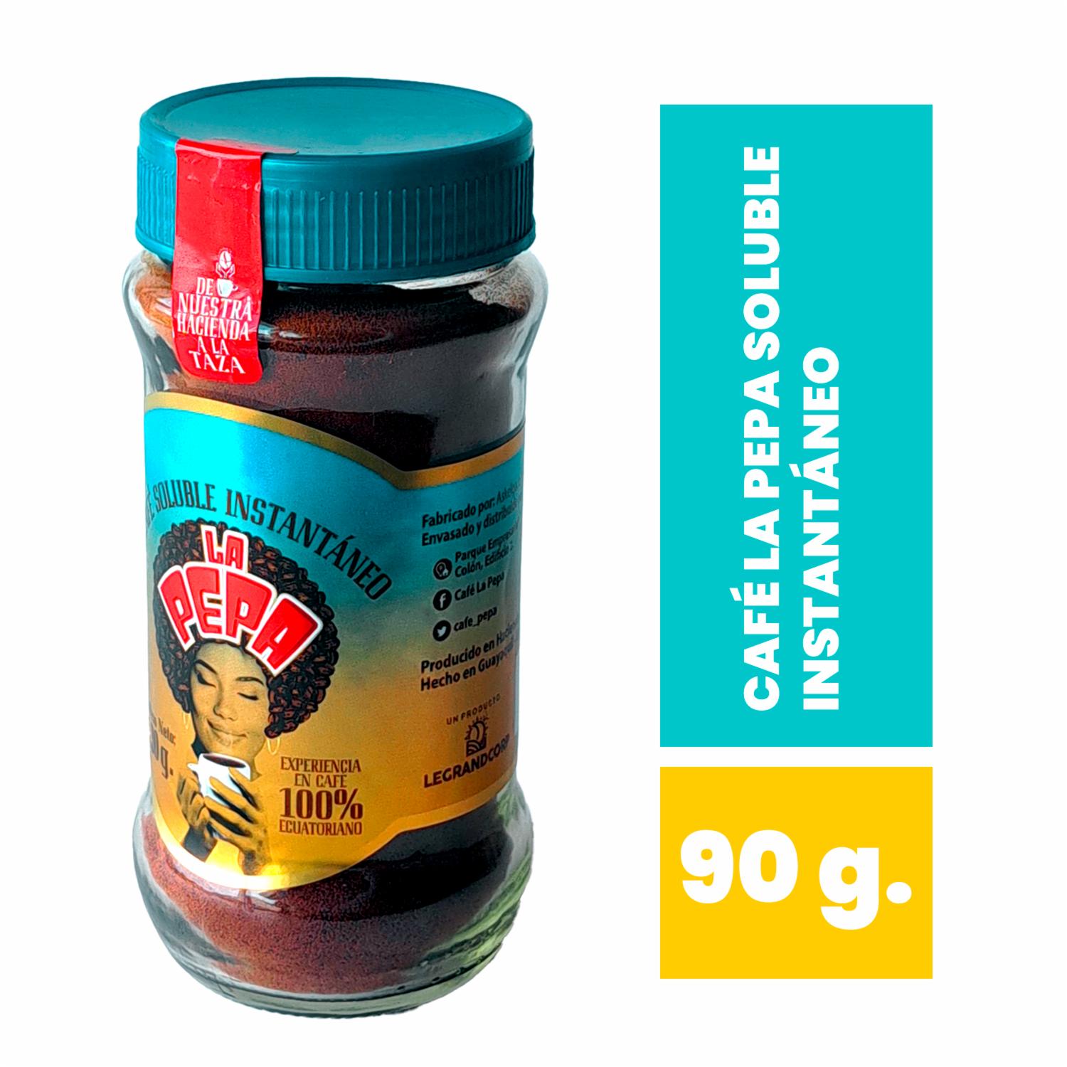 - El Café Soluble Instantáneo LA PEPA es la opción perfecta para los amantes del café que buscan una preparación rápida y deliciosa. Con su sabor intenso y aroma inconfundible, este café soluble te permite disfrutar de una taza de café de alta calidad en cuestión de segundos