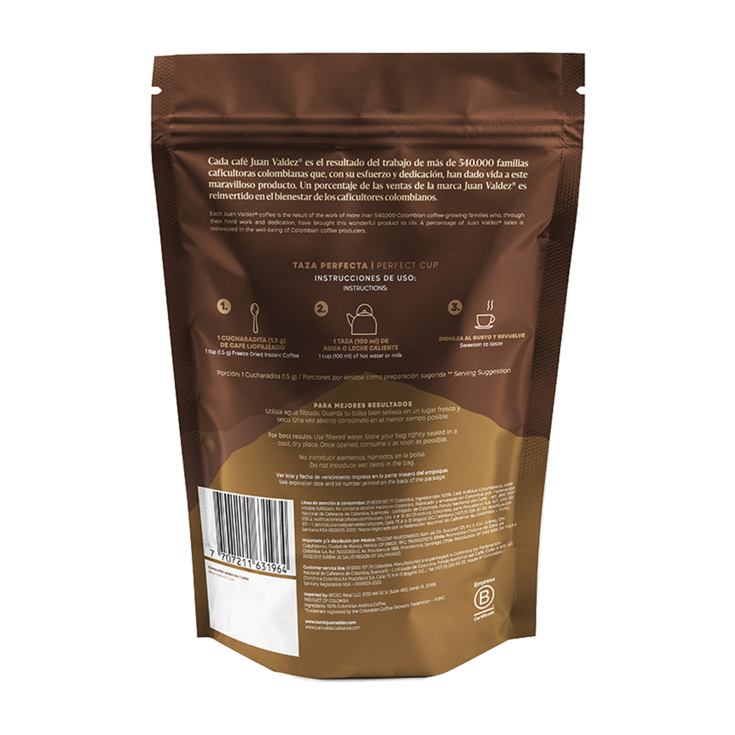 - Café 100% colombiano,- Proceso de liofilización que permite conservar el sabor y aroma del café fresco,- Empaque Doypack que permite una fácil manipulación y conservación del producto,- Fácil y rápida preparación del café,- Disponible en diferentes presentaciones y tamaños para adaptarse a las necesidades del consumidor