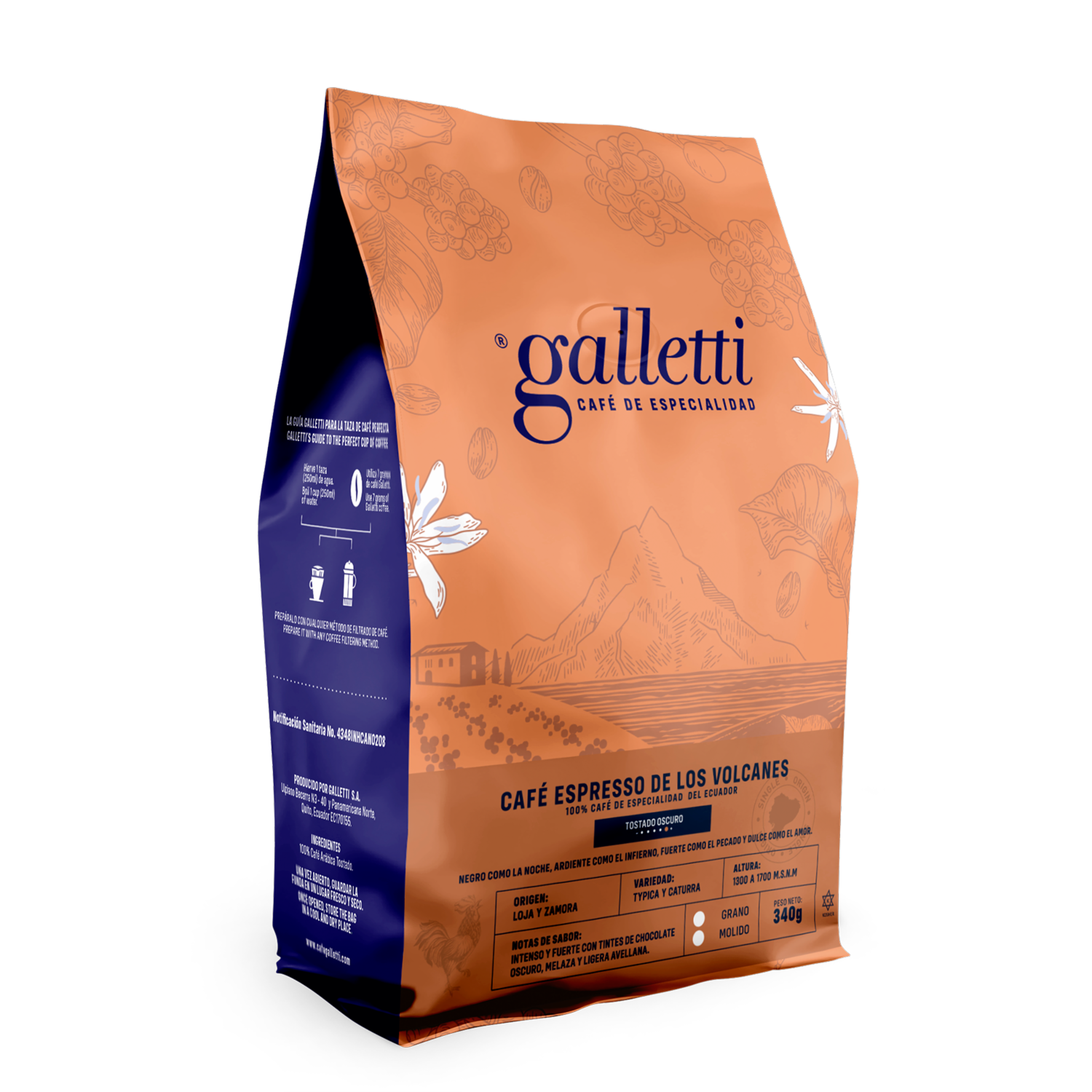 Café Tostado Y Molido Oscuro Espresso De Los Volcanes GALLETTI 340 G