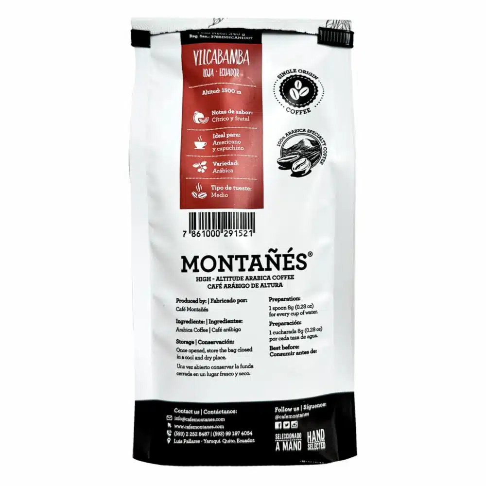 Café Tostado Y Molido Vilcabamba MONTAÑÉS 340 G – MONTAÑÉS. Disponible en nuestros locales. Precio y stock pueden variar según la tienda.
