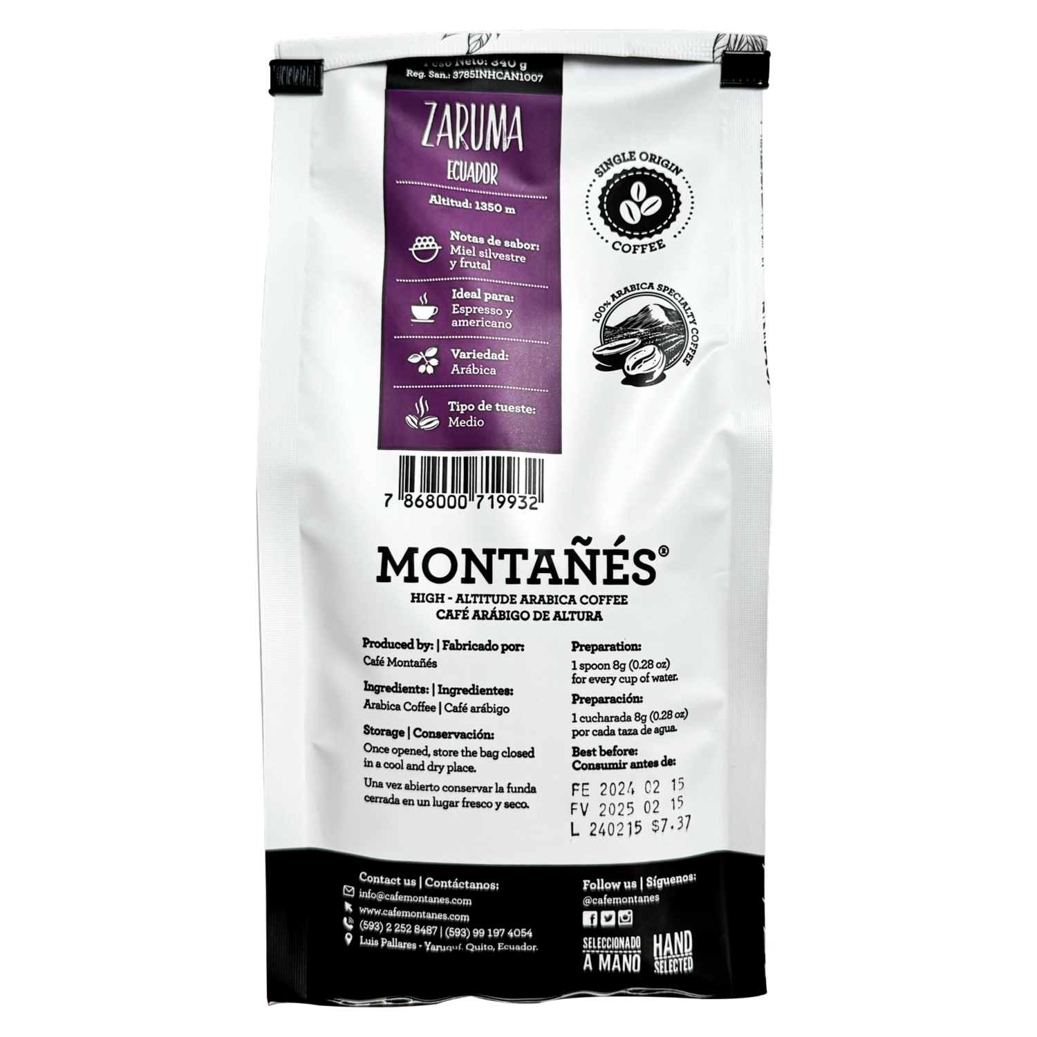 Café Tostado Y Molido Zaruma MONTAÑÉS 340 G