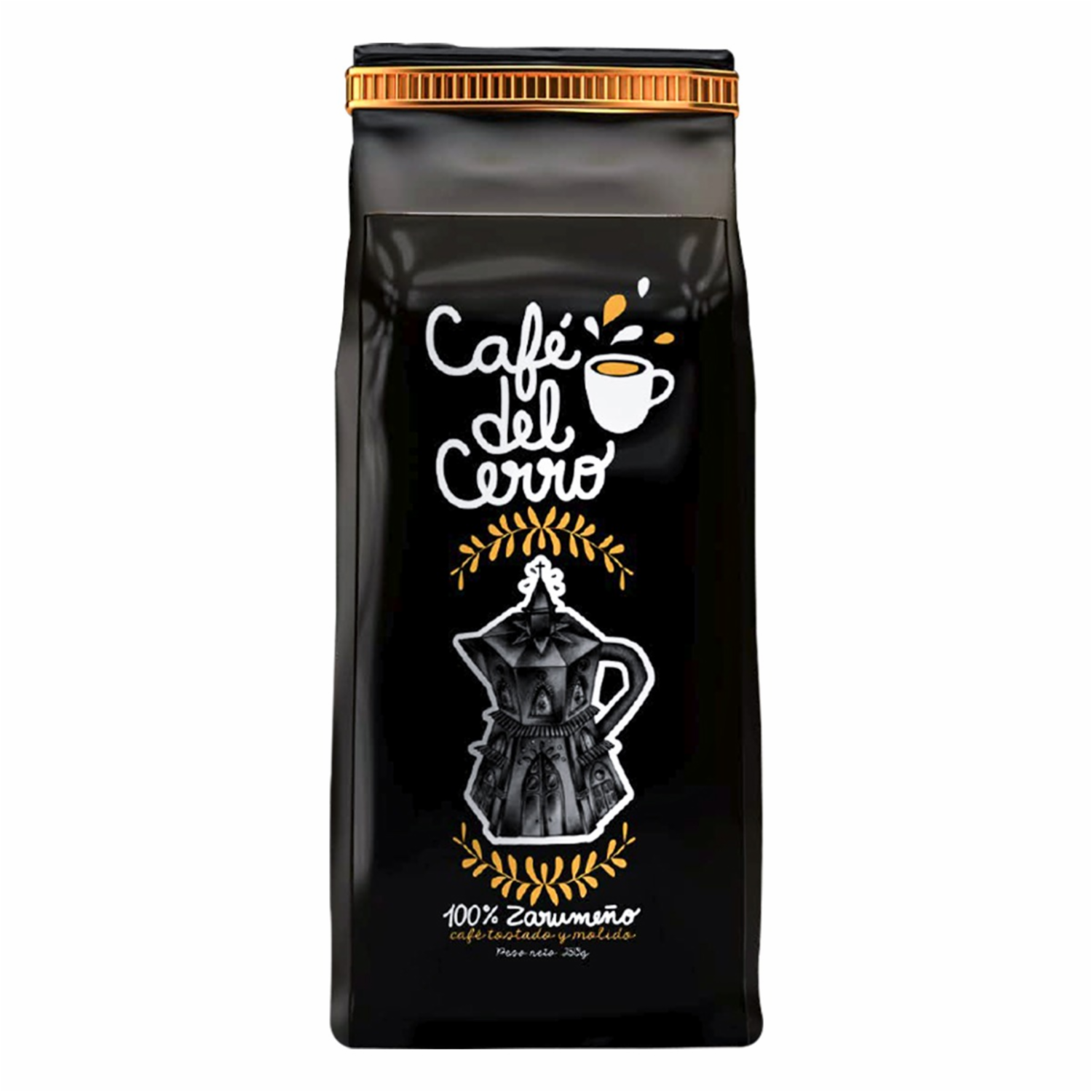 - El Café del Cerro tostado y molido es cuidadosamente seleccionado y clasificado, el más fino café Arábigo en aroma y sabor, ya que se cultiva a más de alturas de 600 metros sobre el nivel del mar en Zaruma-Ecuador