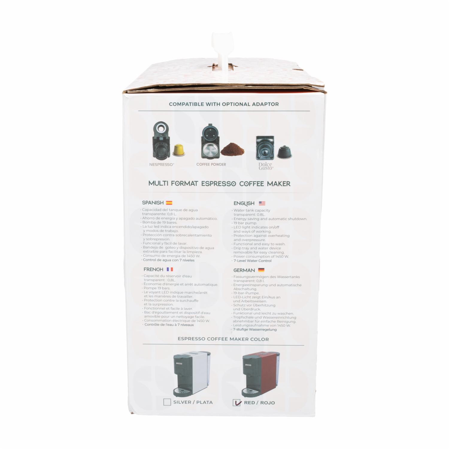 Disfruta del placer de beber un delicioso café preparado en esta cafetera multiformato. Características: - Modelo: Multiformato, apto para cápsulas tipo Dolce Gusto, cápsulas tipo Nespresso y para café molido. - Color: Negro. - Capacidad: cuenta con 7 niveles de control de agua. - Panel de control iluminado. - Pre calentamiento en tan solo 40 segundos