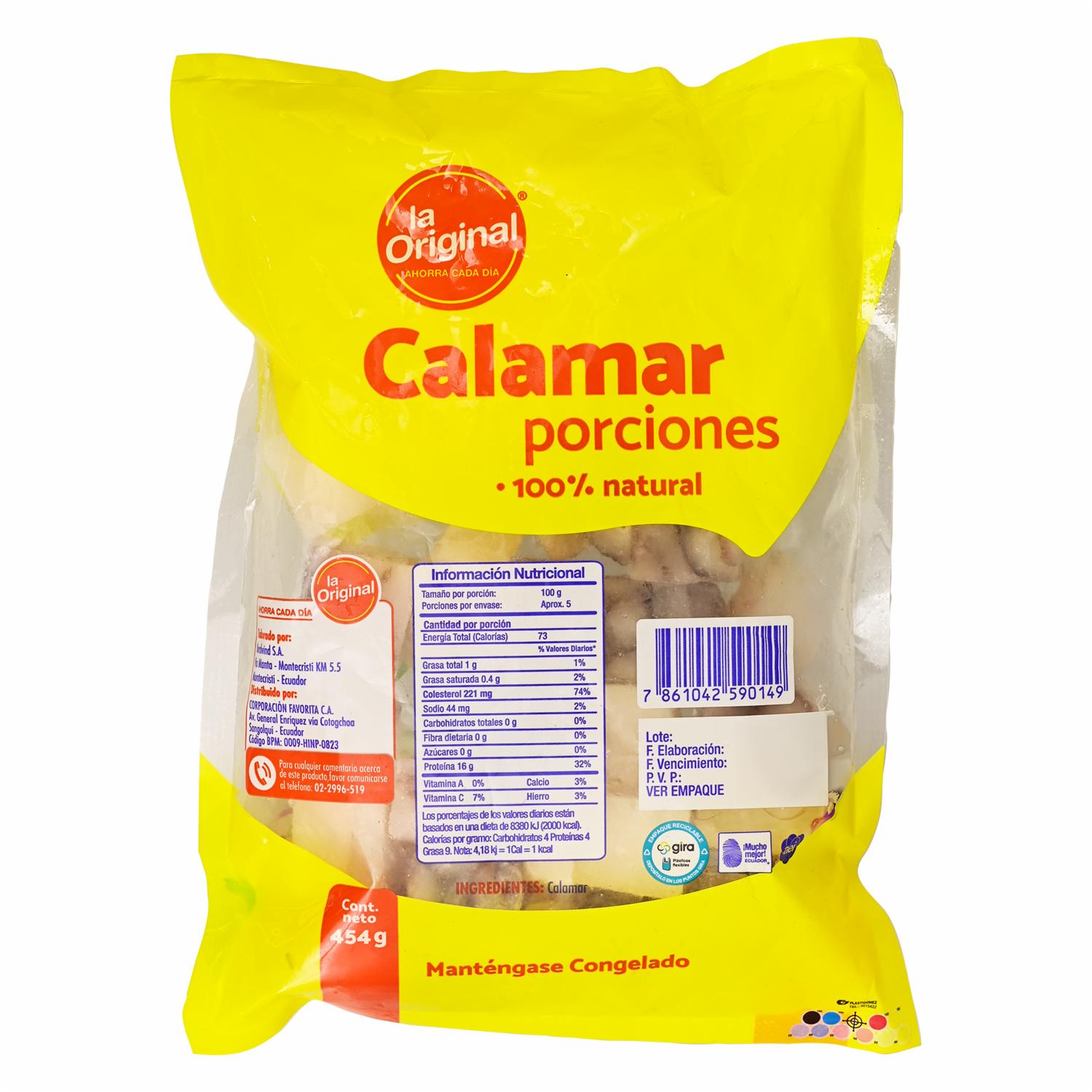 consultando preciosCalamar Porciones LA ORIGINAL 454 G – LA ORIGINAL. Disponible en nuestros locales. Precio y stock pueden variar según la tienda.