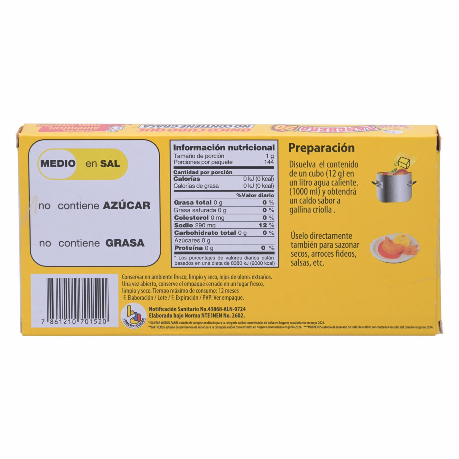 Caldo De Gallina Cubo RANCHERO 12X12 G