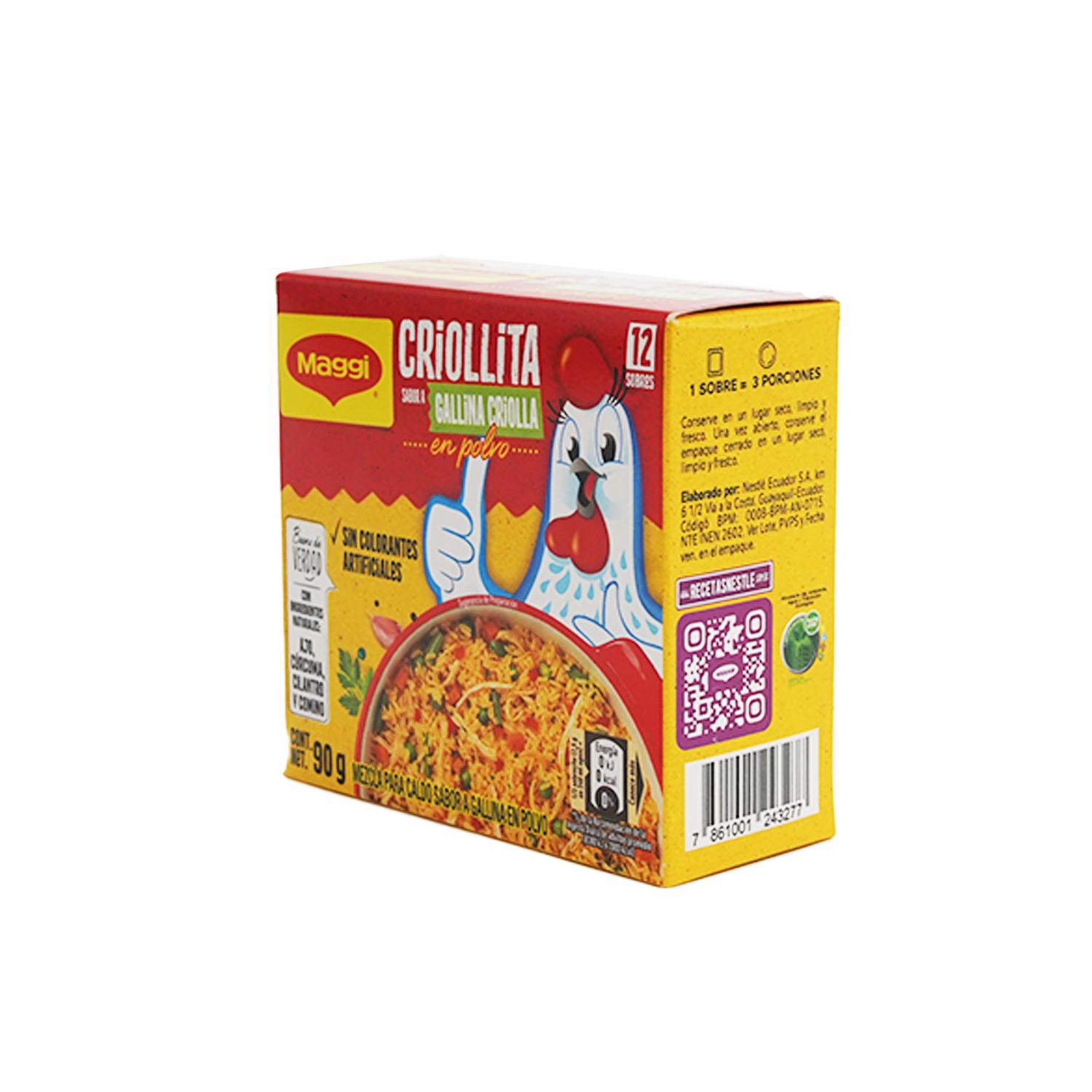 - Ese saborcito criollo que tanto te gusta, encuéntralo en Criollita MAGGI®, gracias a sus ingredientes naturales le da la consistencia y el sabor perfecto a tus recetas. ¡Cómpralo ahora! Sin colorantes artificiales. Sin preservantes.