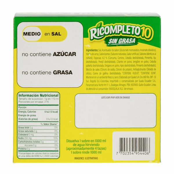 Añade un sabor profundo y delicioso a tus platos con el Caldo de Gallina en Polvo RICOMPLETO 10. En presentación de 227 g, este caldo en polvo es ideal para dar un toque auténtico a sopas, guisos y salsas. Fácil de disolver y de sabor intenso, es el complemento perfecto para realzar tus recetas