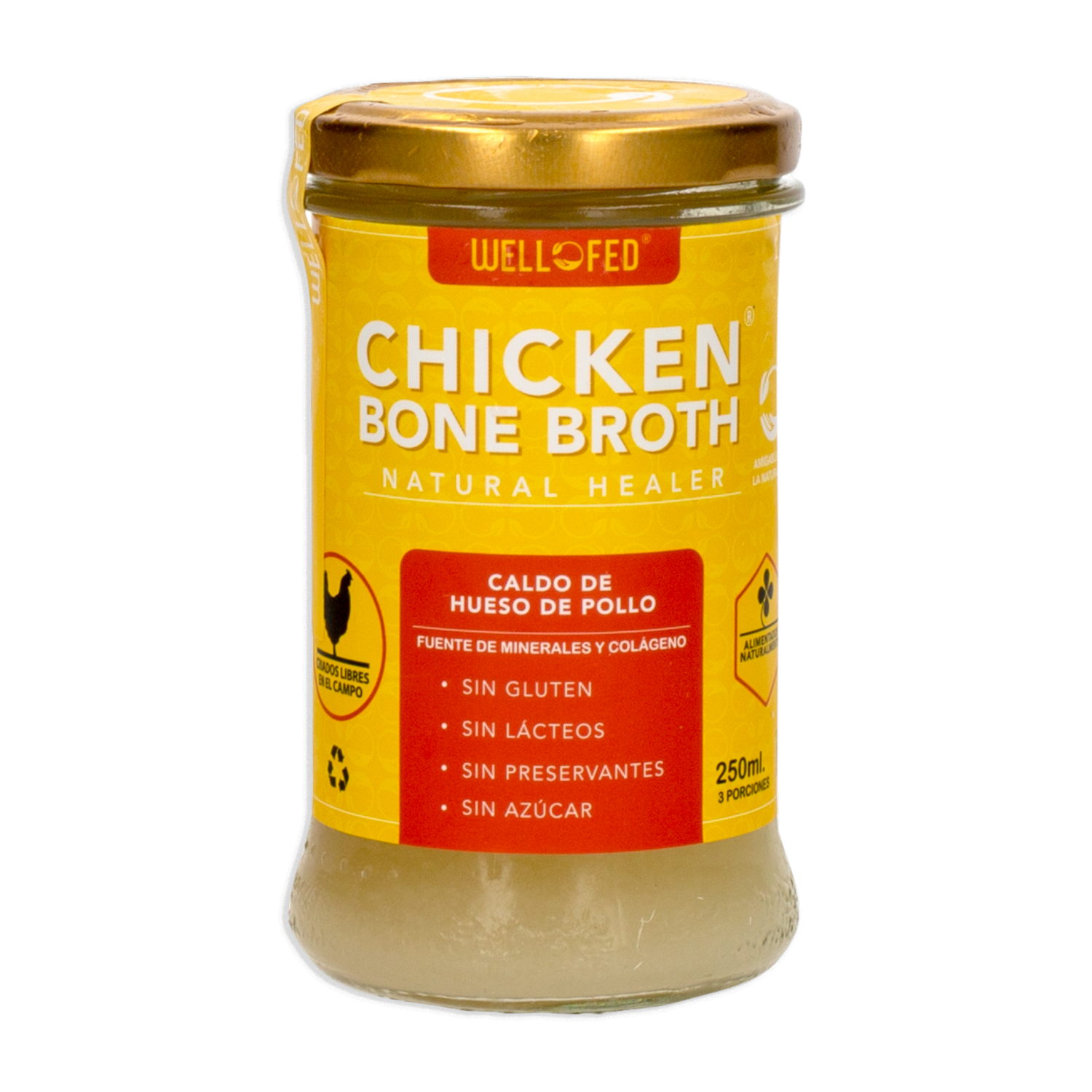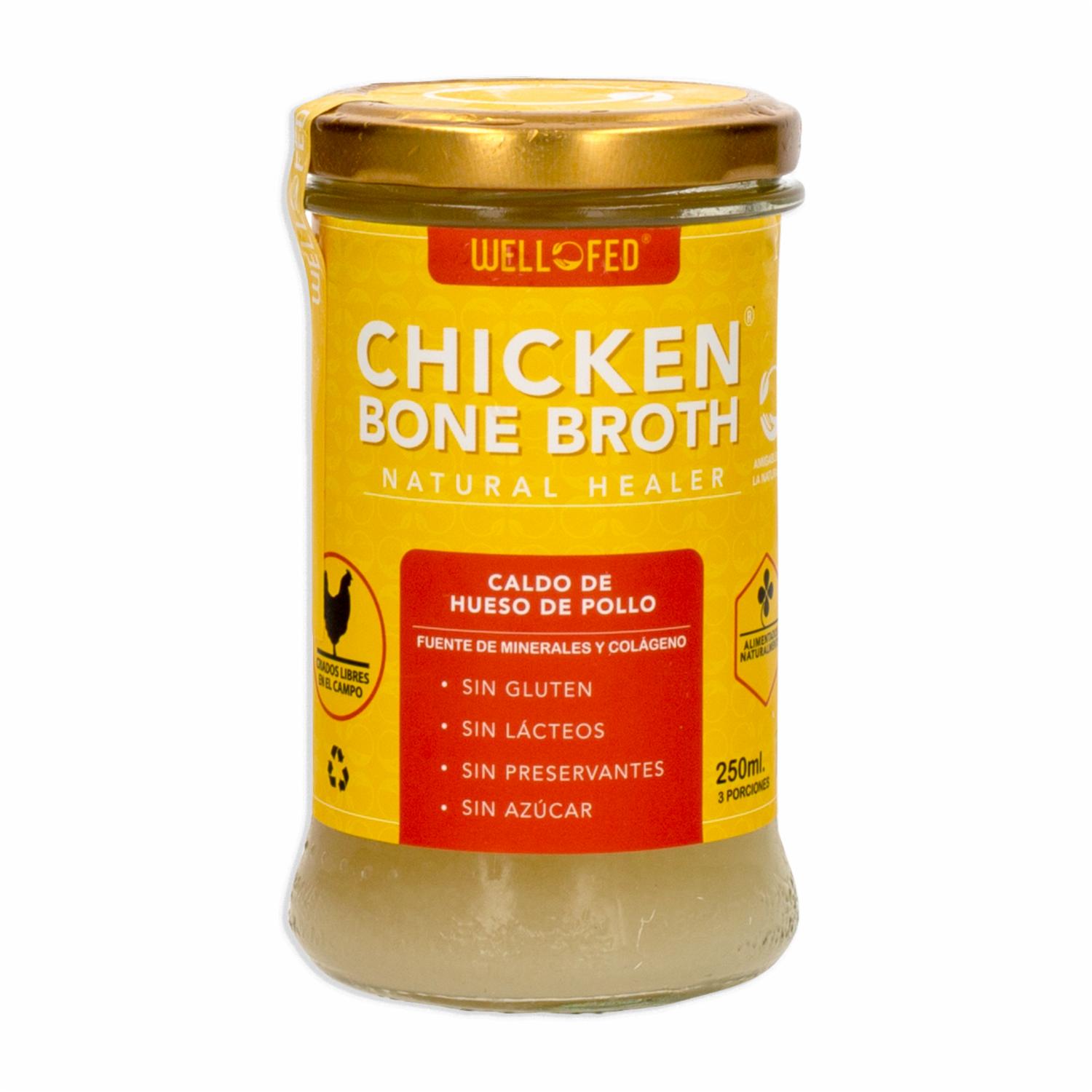 - Caldo de Hueso de Pollo BONE BROTH Natural Healer, es una base ideal para potenciar tus preparaciones culinarias gracias a su sabor concentrado. Sin gluten, sin lácteos, sin preservantes, sin azúcar. Fuente de minerales y colágeno
