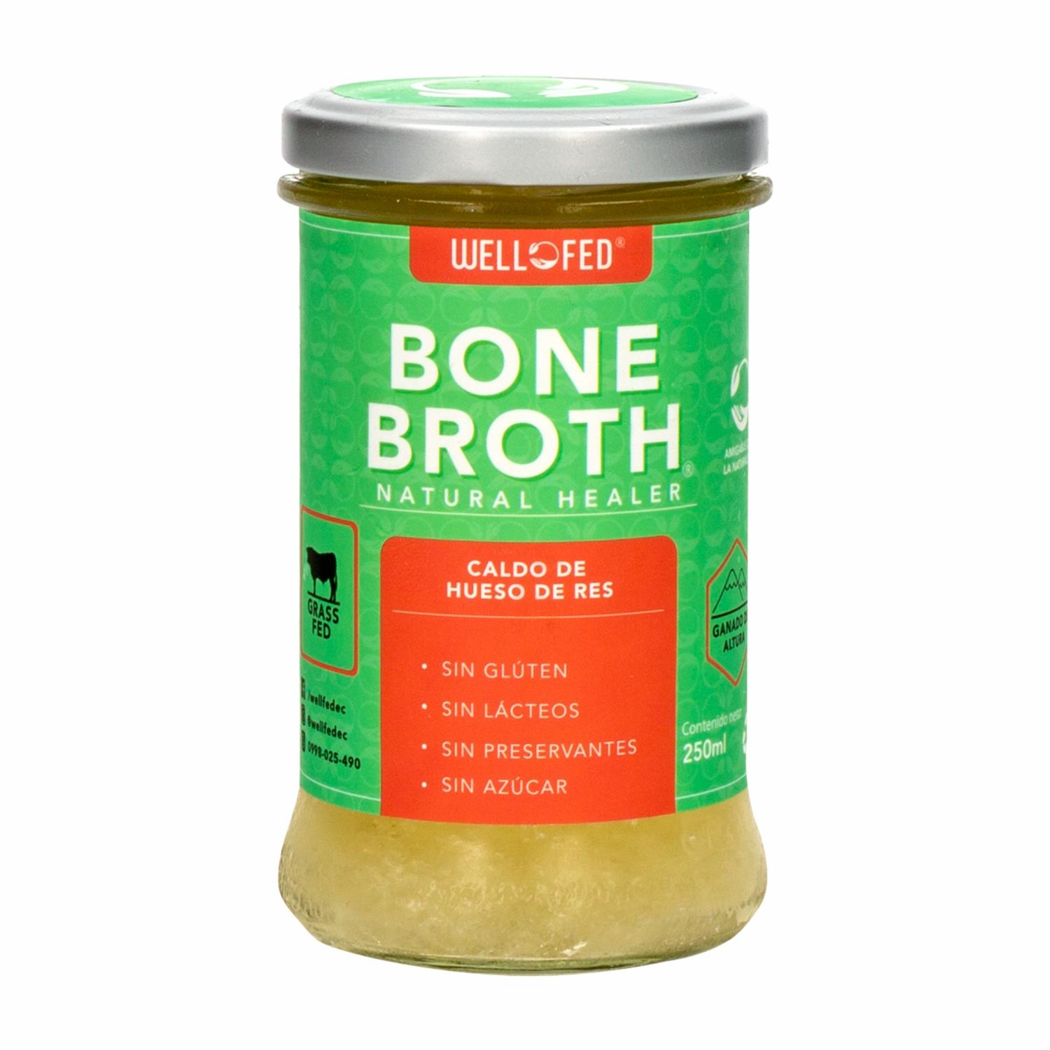 - Caldo de Hueso de Res BONE BROTH Natural Healer, es una base ideal para potenciar tus preparaciones culinarias gracias a su sabor concentrado. Sin gluten, sin lácteos, sin preservantes, sin azúcar