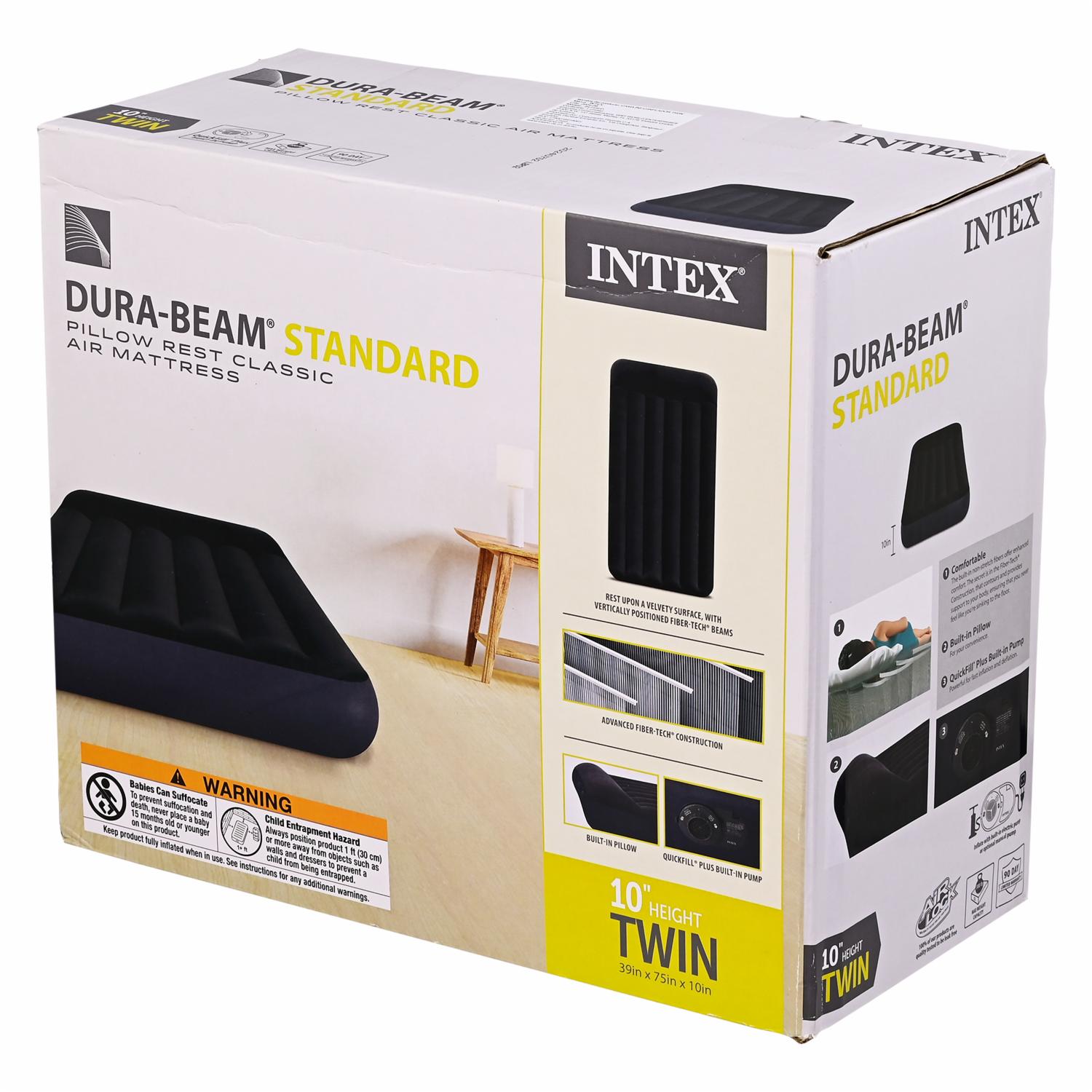 - Características: La Cama Inflable Intex Incluye Una Bomba Eléctrica Para Inflarla Y Desinflarla Fácilmente, Está Fabricada Con Vinilo Resistente Y Cuenta Con Una Superficie Aterciopelada Para Mayor Comodidad
