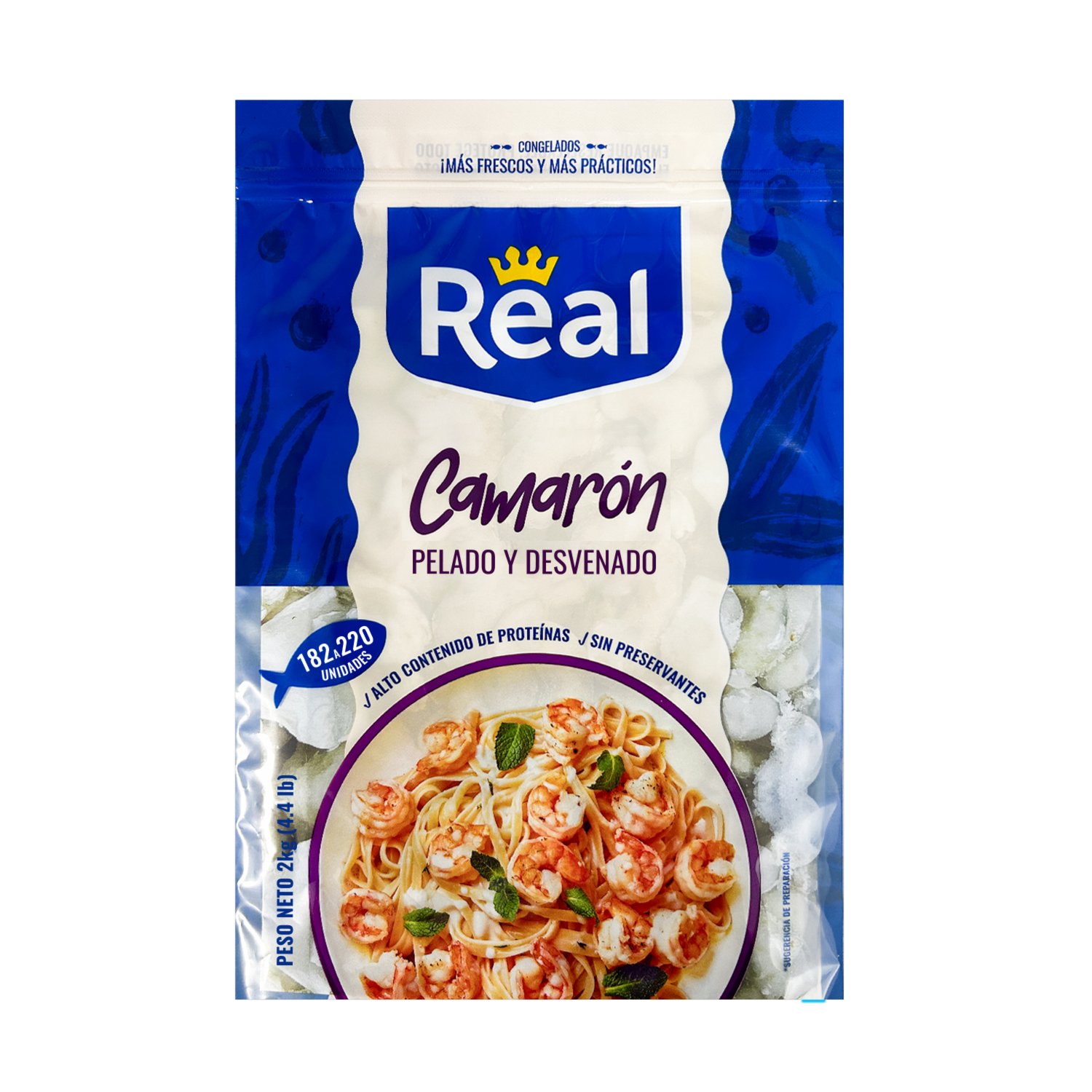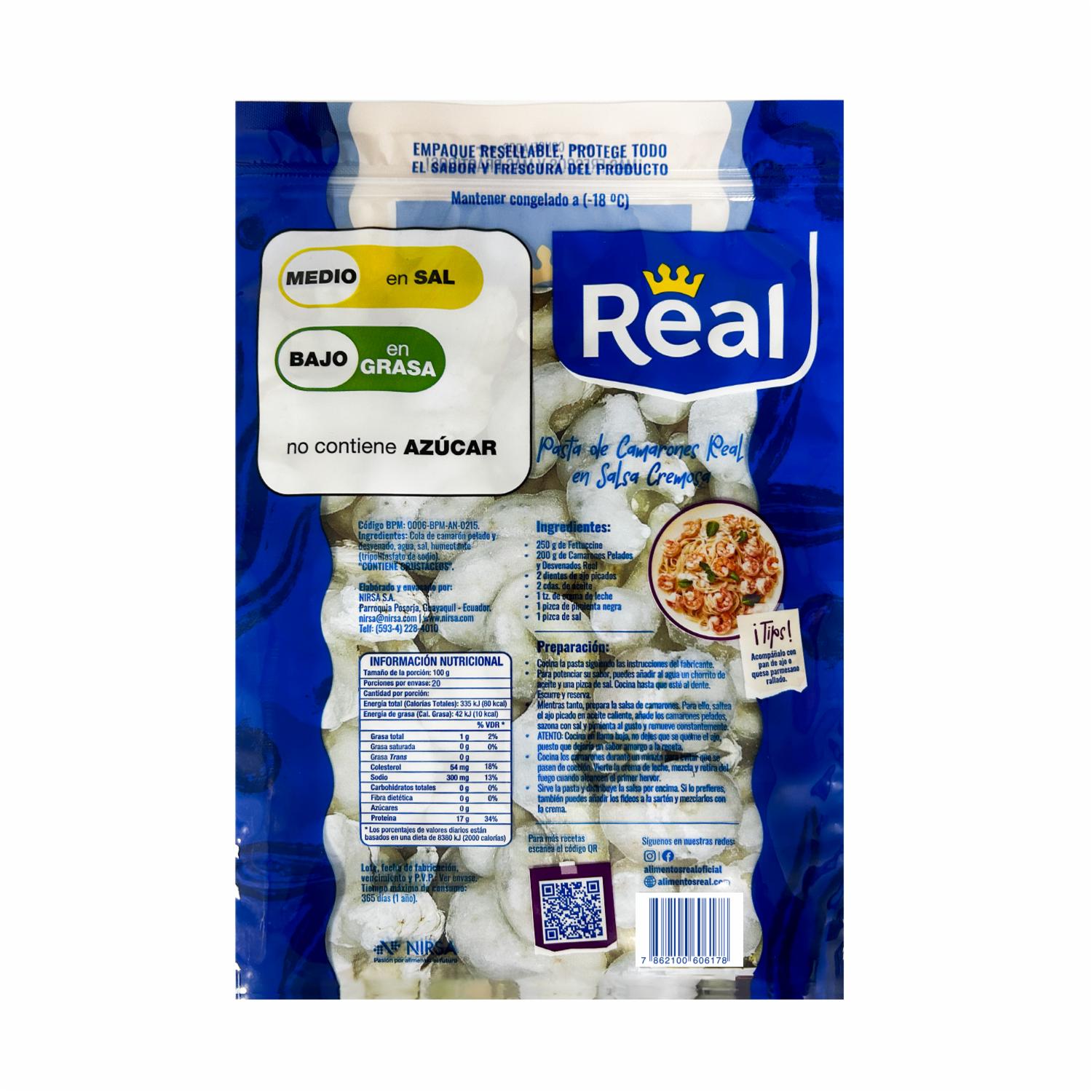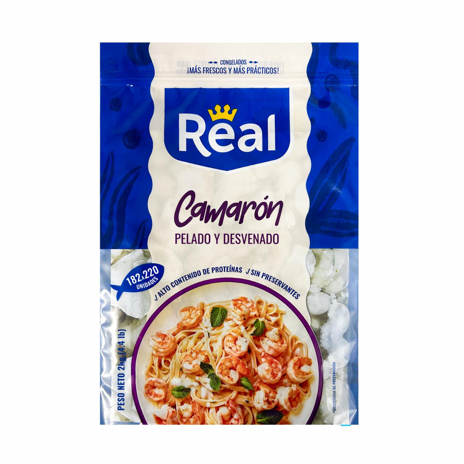 - Estos camarones son cuidadosamente seleccionados, para brindarte la frescura y el sabor del mar en cuestión de minutos. Con REAL, disfruta de la comodidad sin sacrificar la calidad