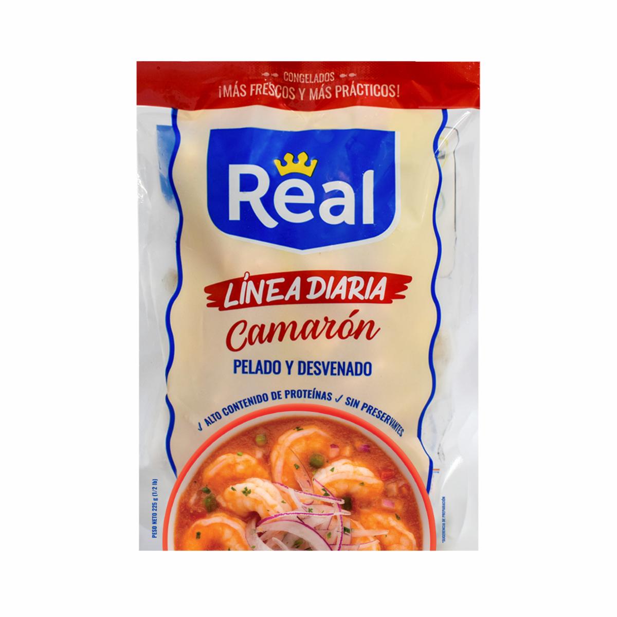 Camarón Congelado Pelado Y Desvenado Línea Diaria REAL 225 G – REAL. Disponible en nuestros locales. Precio y stock pueden variar según la tienda.