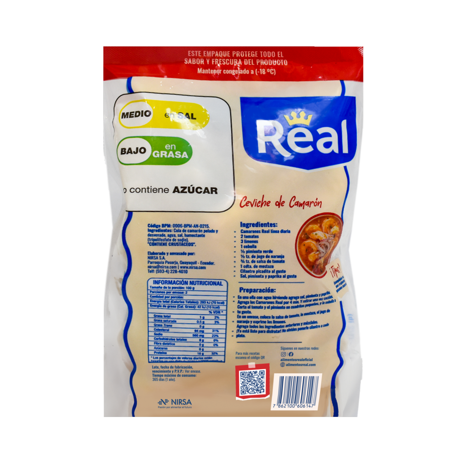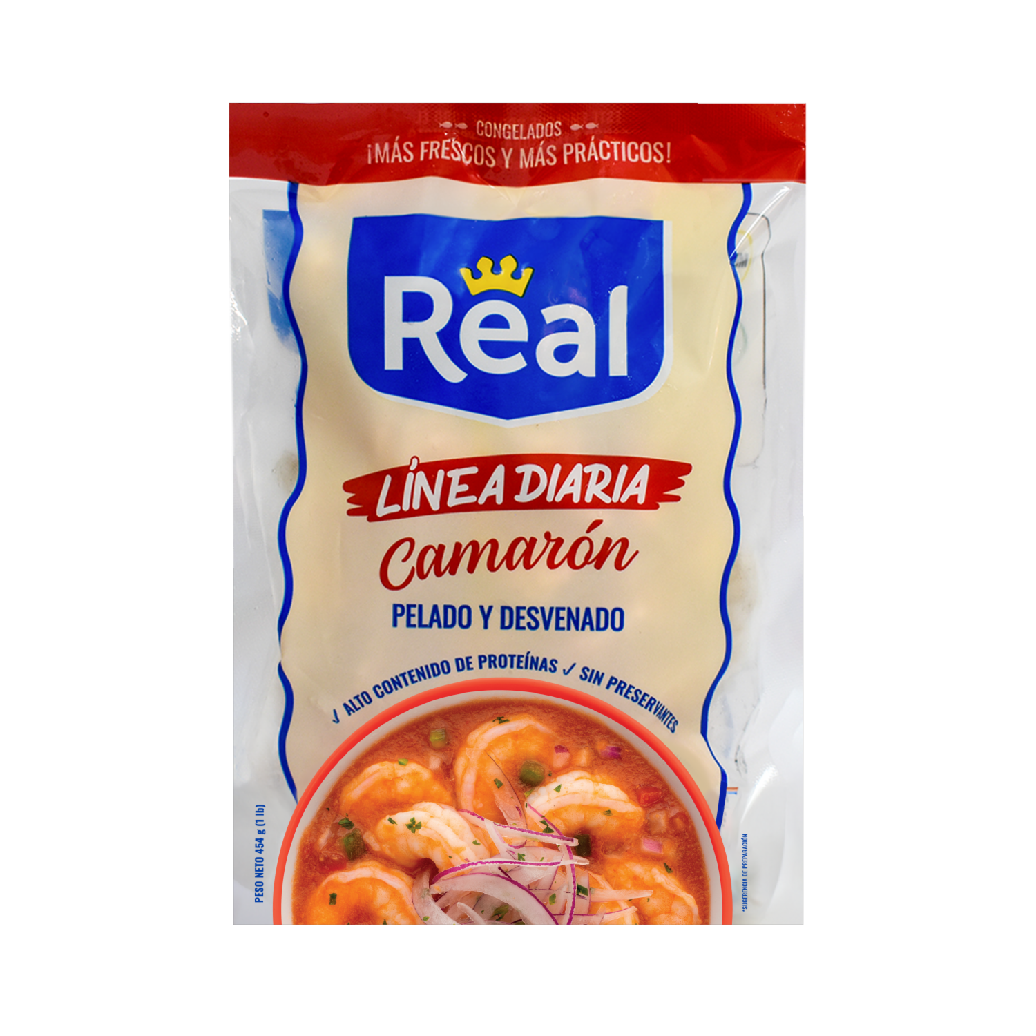 - Estos camarones son cuidadosamente seleccionados, para brindarte la frescura y el sabor del mar en cuestión de minutos. Con REAL, disfruta de la comodidad sin sacrificar la calidad