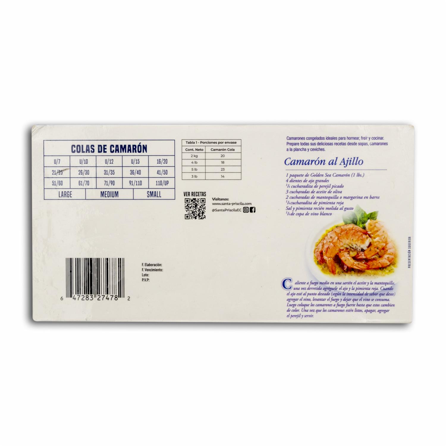 Camarón Jumbo SANTA PRISCILA 2270 G – SANTA PRISCILA. Disponible en nuestros locales. Precio y stock pueden variar según la tienda.