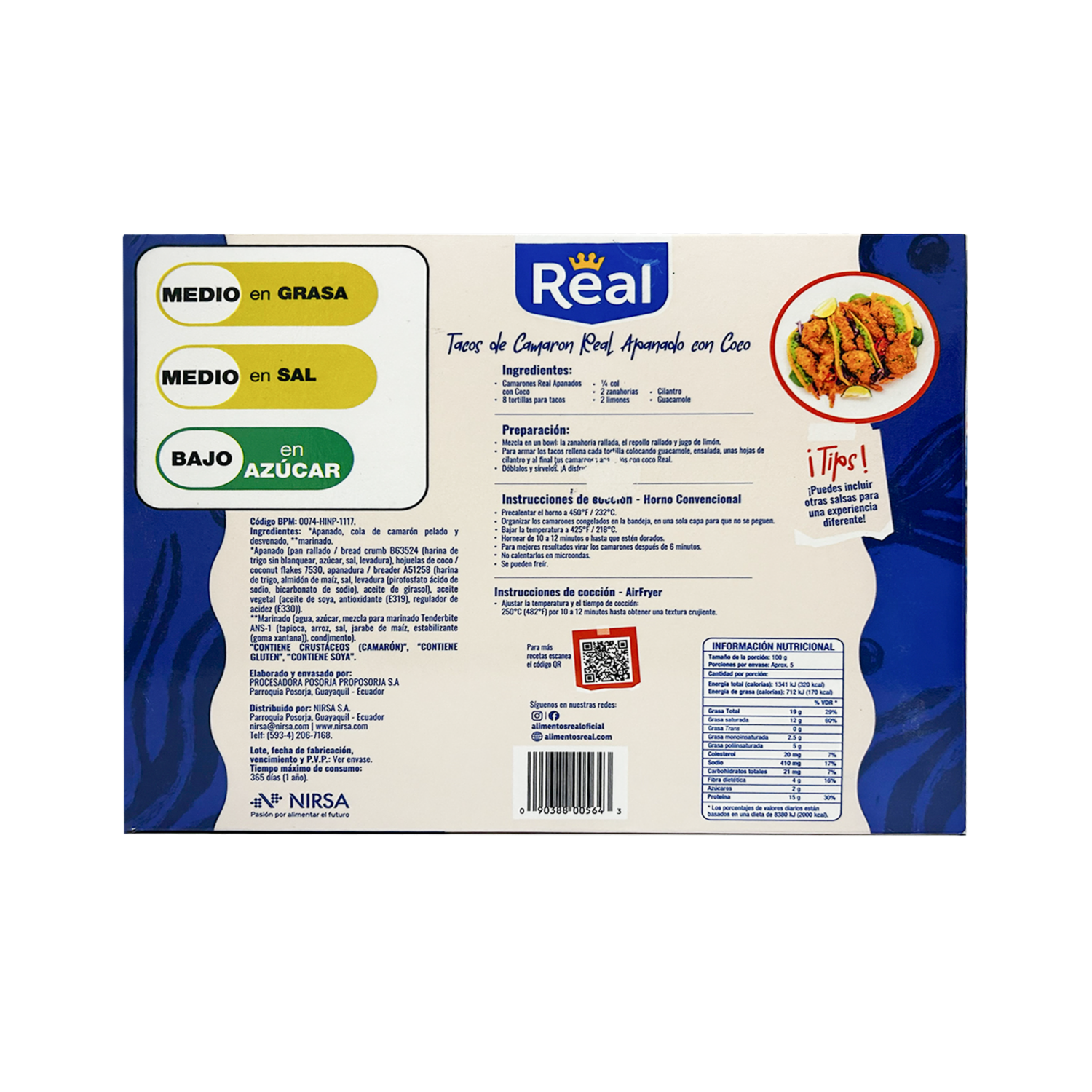 Camarones Apanados Con Coco Precocidos Y Congelados REAL 454 G – REAL. Disponible en nuestros locales. Precio y stock pueden variar según la tienda.